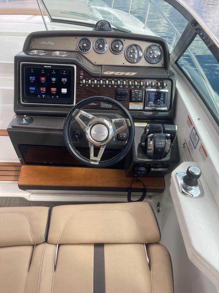 Not all accessories shown or described herein are standard equipment or even available as options. Some features and options may not be available when a boat is built for outside North America and/or has CE Certification. Options and features are subject to change without notice. Not all model-year boats may contain all the features or meet the specifications described herein. Confirm availability of all accessories and equipment with an authorized Sea Ray dealer prior to purchase.
