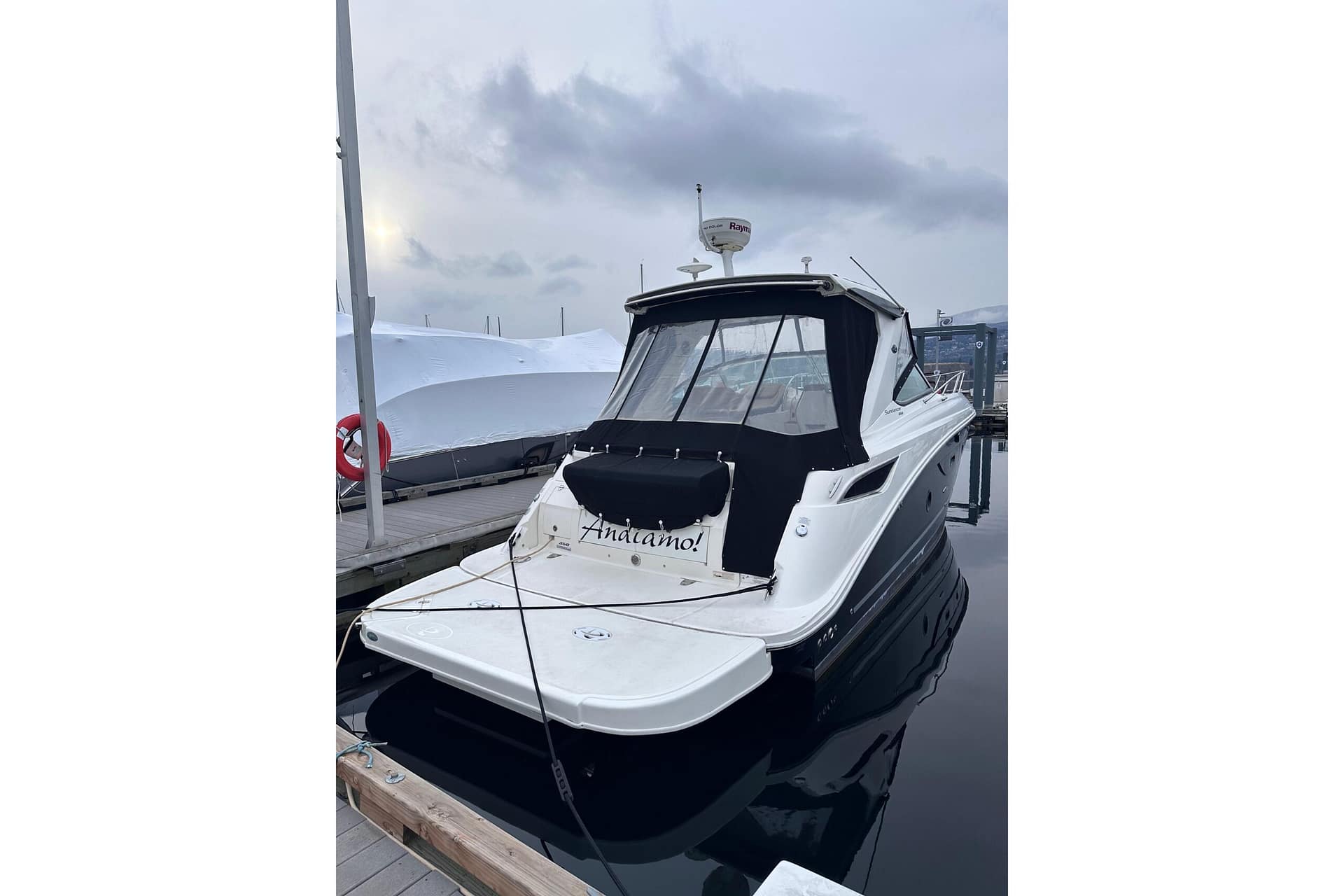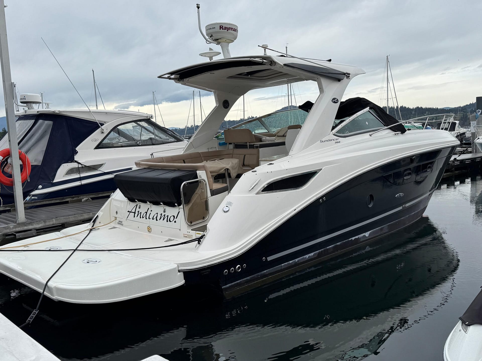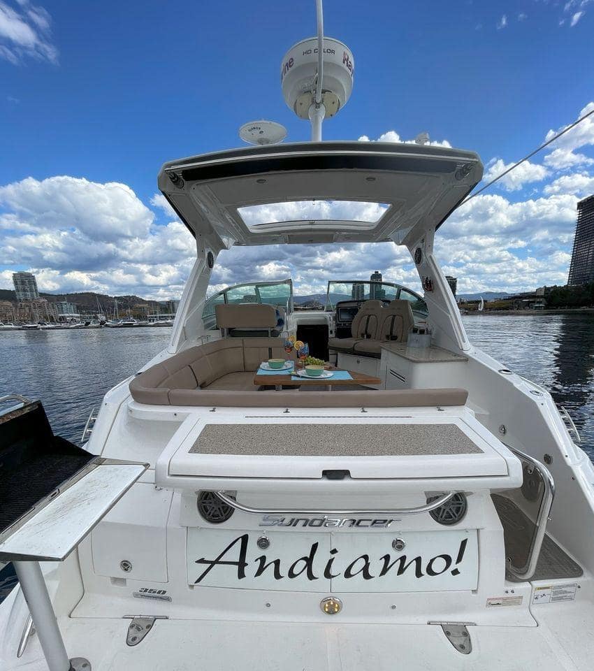 This stunning 2016 SR 350 Sundancer is powered by Twin (Upgraded) 8.2L MerCruisers V8 Big Block 375HP with closed loop cooling. (standard was 6.2L Merc 350HP)