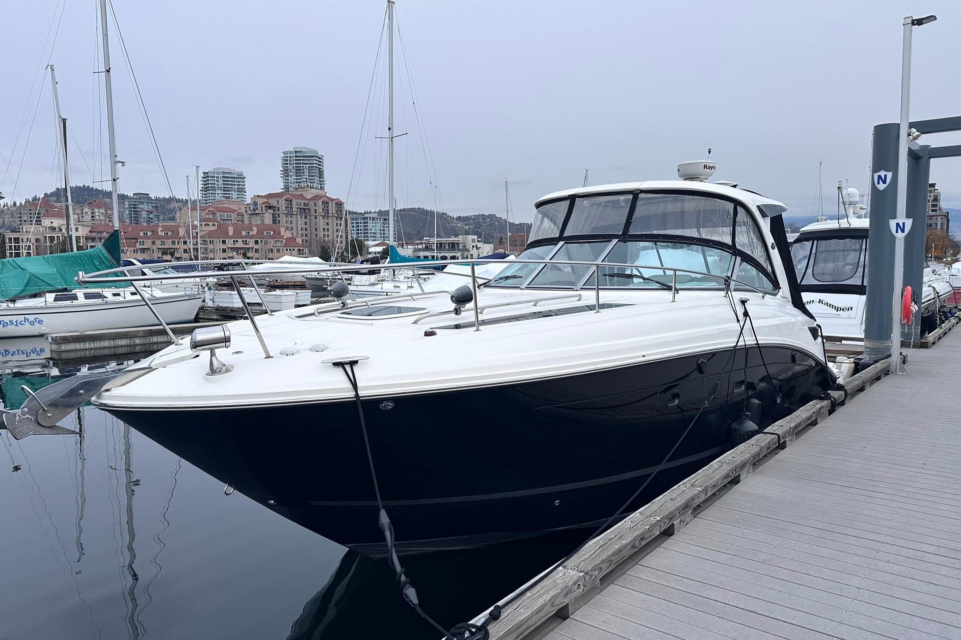 Sterndrives; Bravo3 DuoProp out drives with brand new props. Axis joystick and skyhook equip, RayMarine HD Colour radar/ plotter. hydraulic swim deck. 5kw generator (49Hrs), Electric transom grill, mounted propane Sea-B-Q included, Upgraded Audio multi speaker package with subs and more.