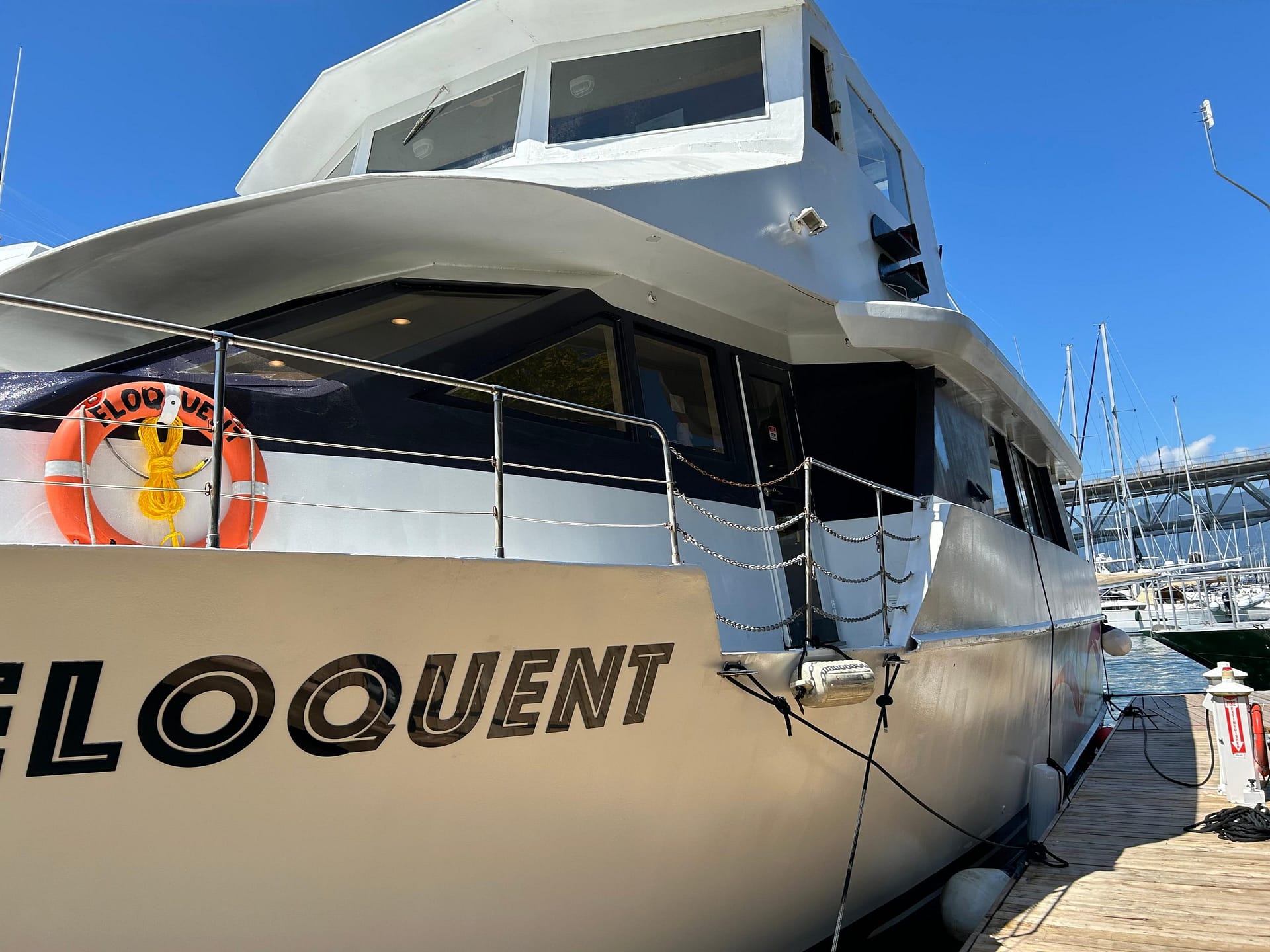 Whether you're a seasoned operator or an entrepreneur seeking a new venture, M/V Eloquent offers an established platform for success. Professionally maintained, recently upgraded, and fully certified, she is a rare opportunity in the West Coast charter market.