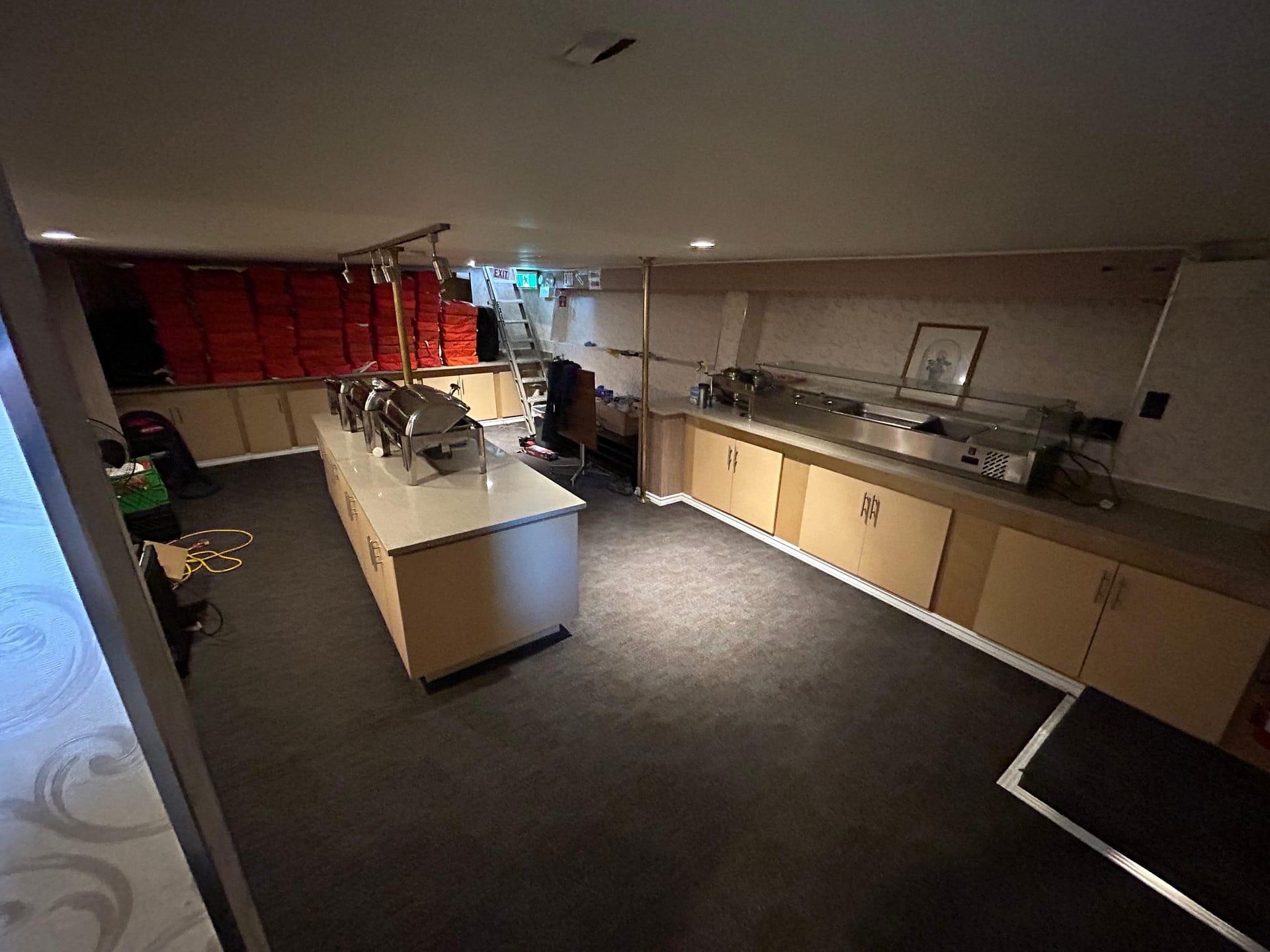 • Commercial-grade kitchen below deck with buffet-style service area