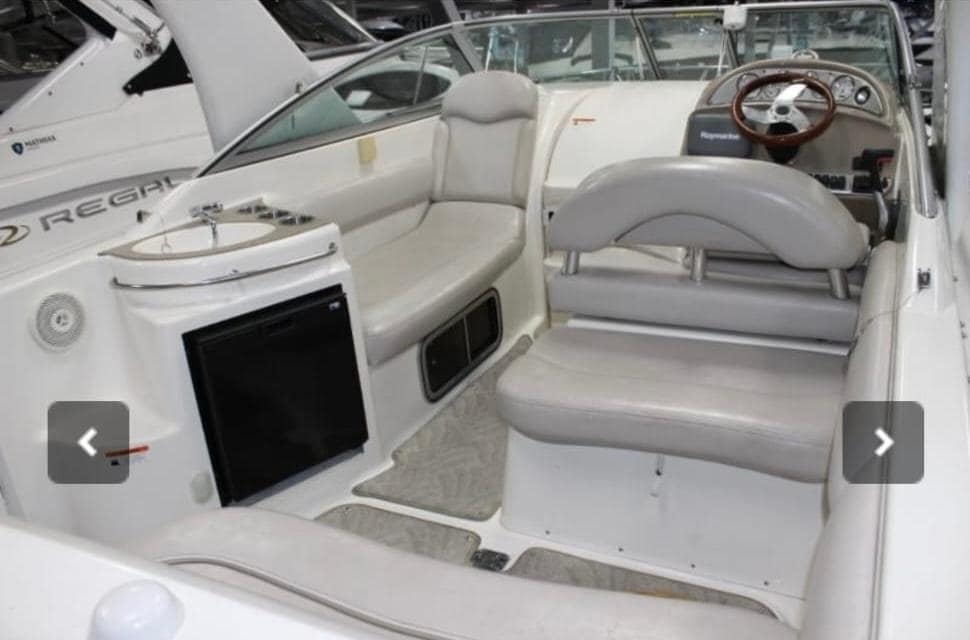 A wet bar, with cockpit fridge, the rear facing radar arch was optional, a walk through windshield for bow access. Winless anchor. And cockpit audio.