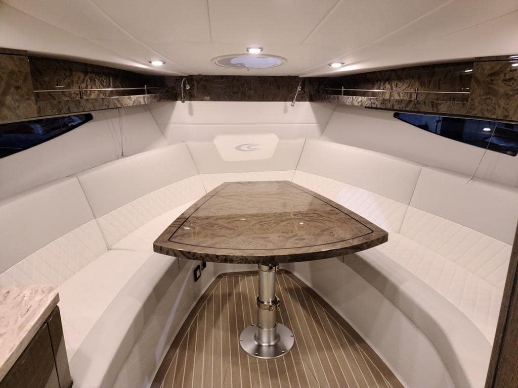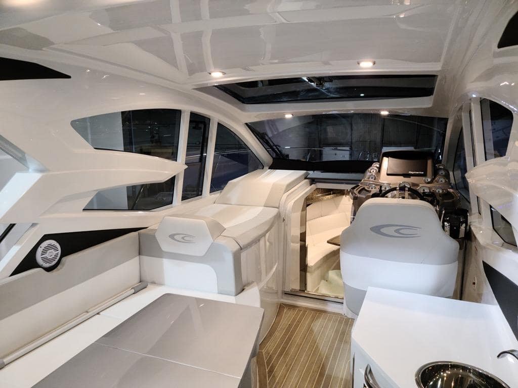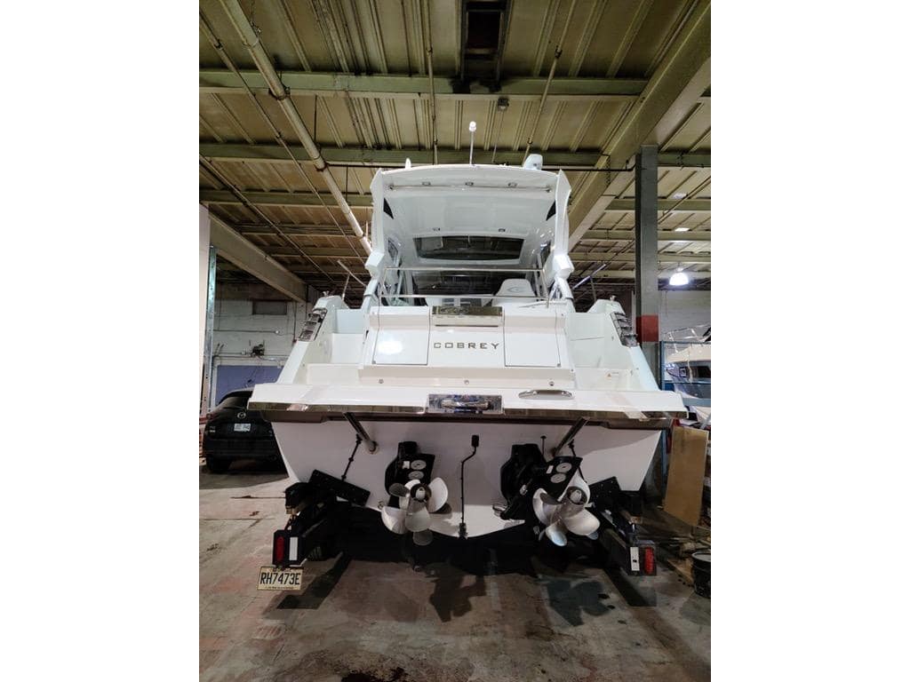 Discover the perfect combination of luxury, performance, and innovative design with this 2021 Cobrey 33HT. Built with a sleek modified-V fibreglass hull, this sport cruiser features an aggressive exterior profile, elegant hardtop with a motorized sunroof, and all the premium amenities you’d expect from a top-tier European brand.