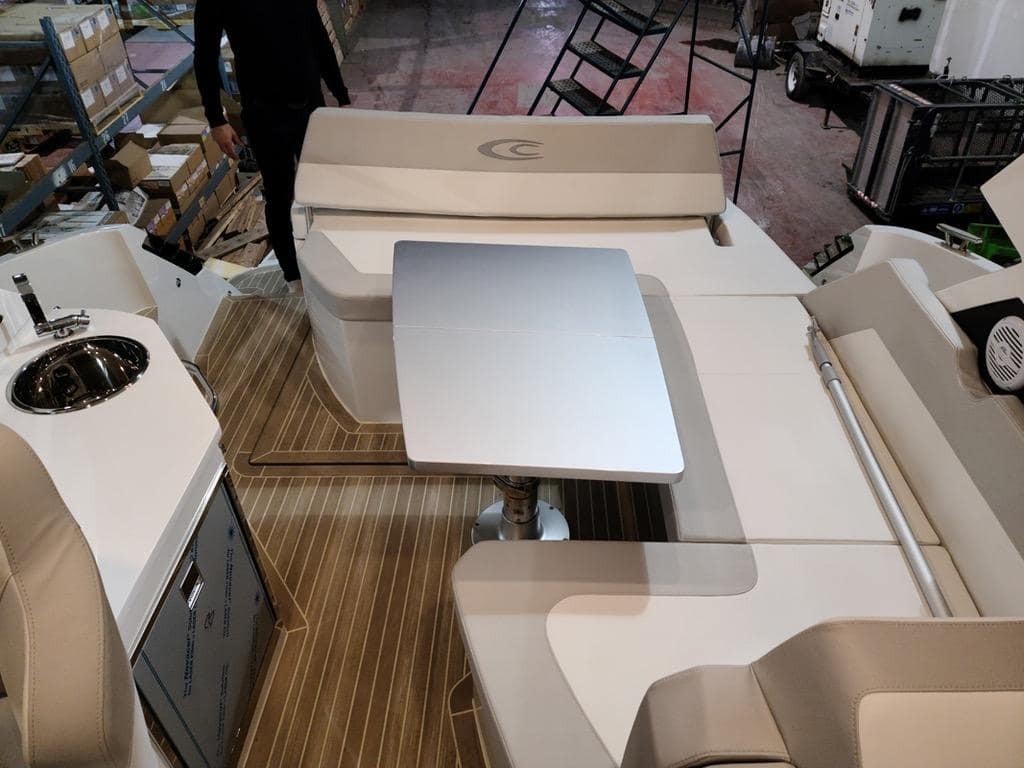 • Integrated wet-bar, cockpit fridge, and removable BBQ grill