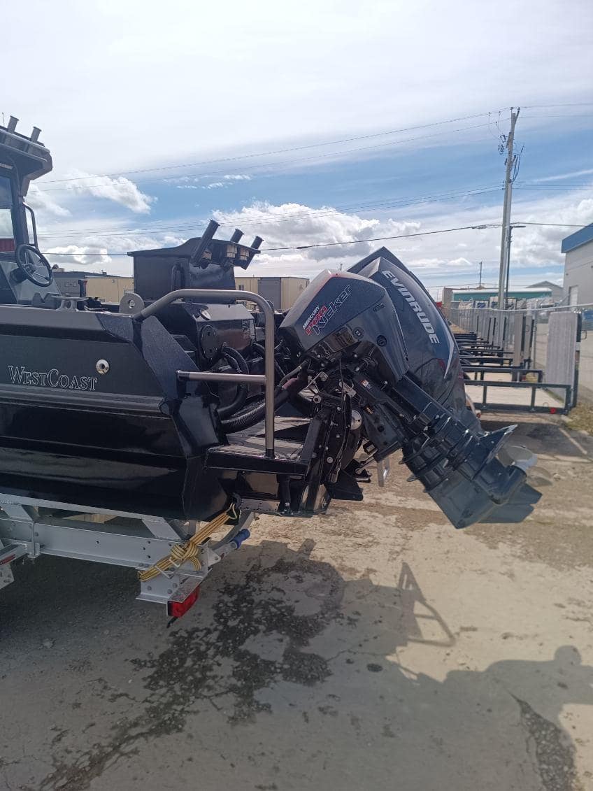 She features a 2018 Evinrude G2 HO 250hp engine with just 200 hours and a full warranty until March 2028. Equipped for serious fishing, it includes a new 15hp Mercury Pro Kicker, Scotty downriggers, rod holders, and a live well.