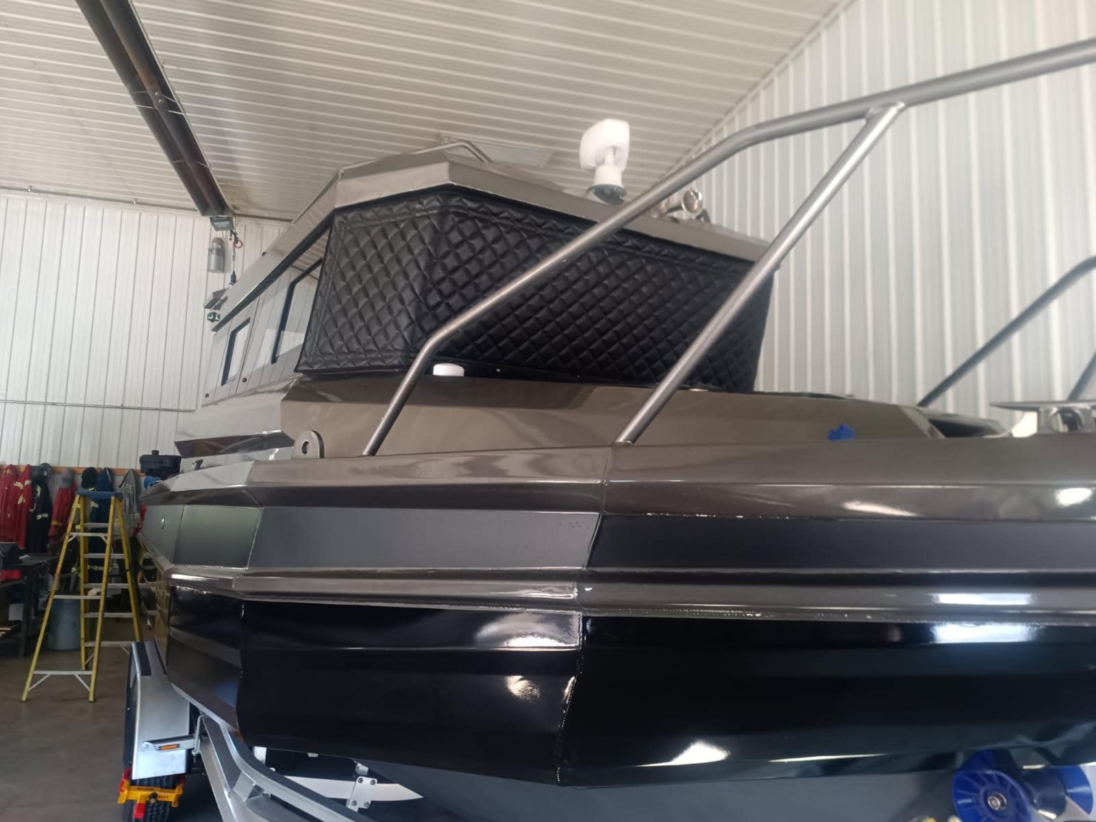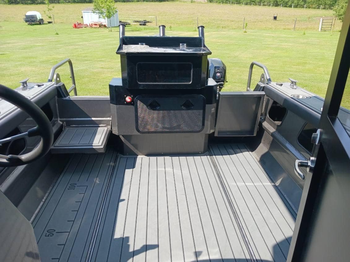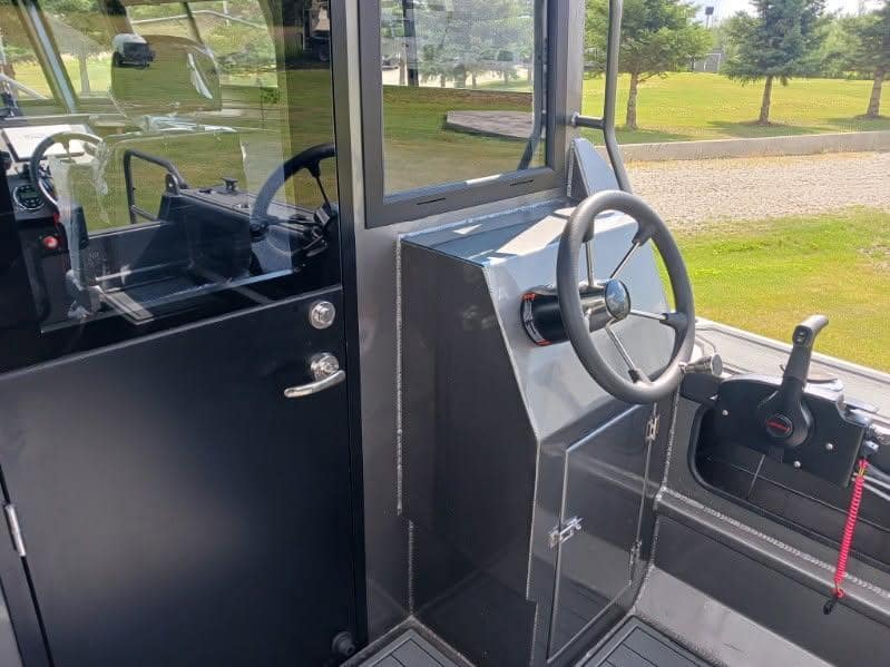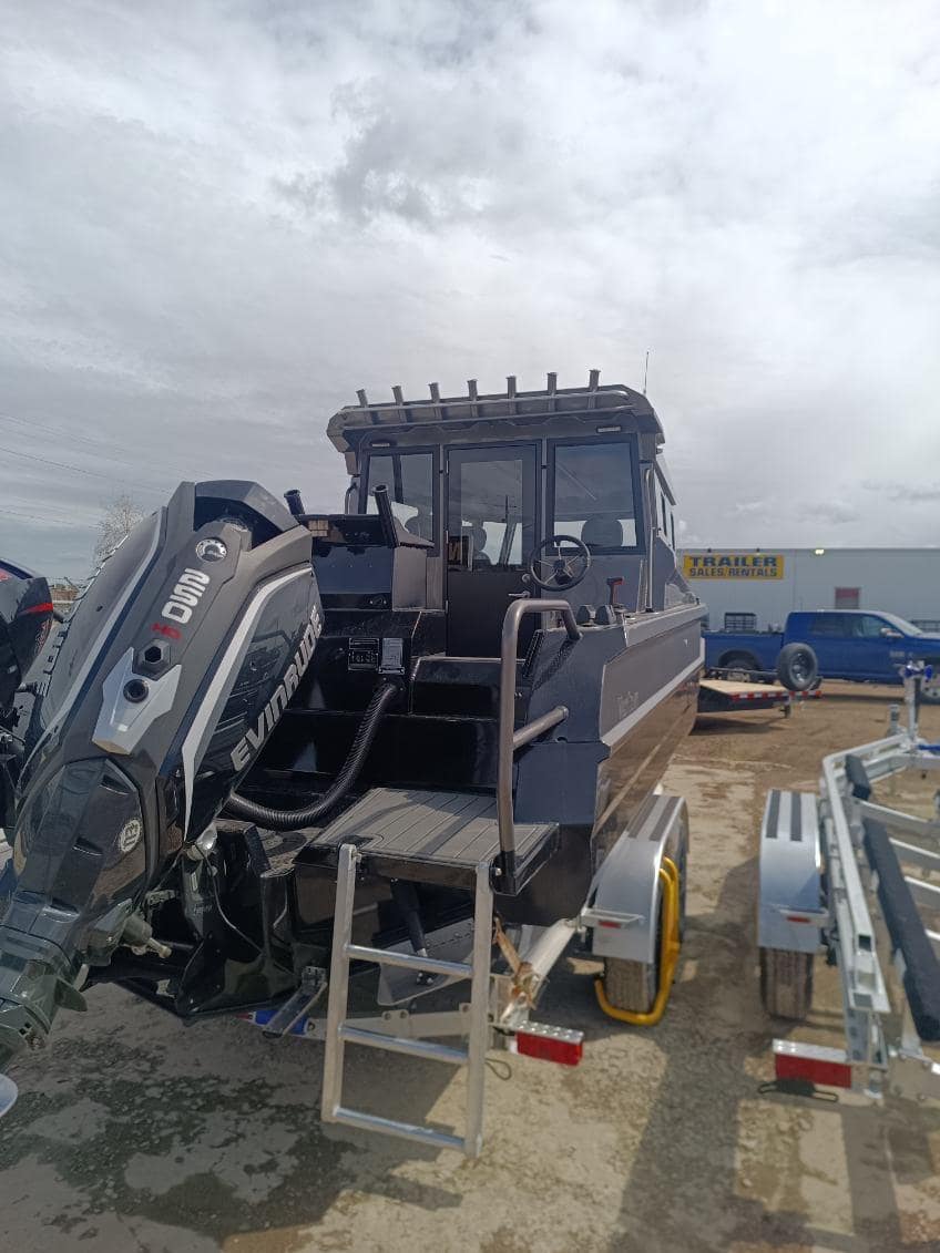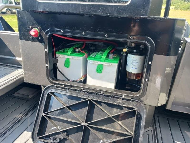 Built from 1/4" marine-grade 5083 aluminum with double hull sides and foam-filled chambers for superior durability, it boasts an 8'6" beam, 90-gallon fuel capacity, with a dry weight of 4,300 lbs (with engines and 100L fuel). 4 coats of epoxy primer,