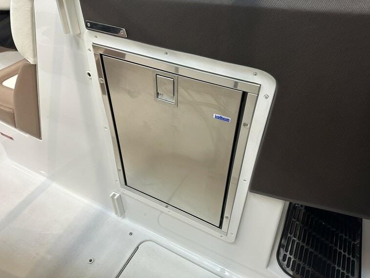 On the tech and comfort front, the Cobalt 296 is a marvel—equipped with a Pioneer head unit featuring Bluetooth, Pandora, Spotify, and auxiliary input, surrounded by six component speakers for an immersive audio experience. For those who crave more tech, enjoy the Garmin GPSmap620 for precise navigation and Livorsi engine controls for effortless command. Not to mention the Isotherm refrigerator and stainless steel switches, adding a hint of modern luxury and convenience.