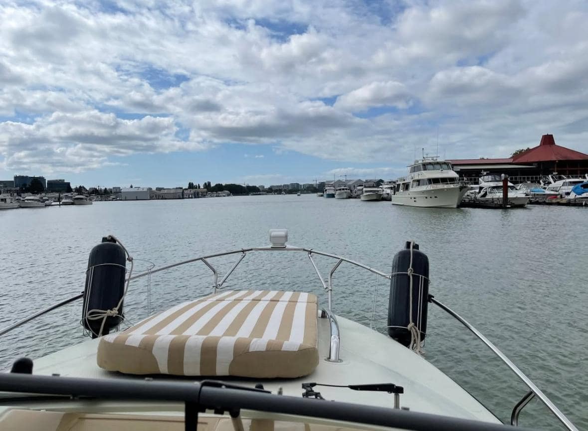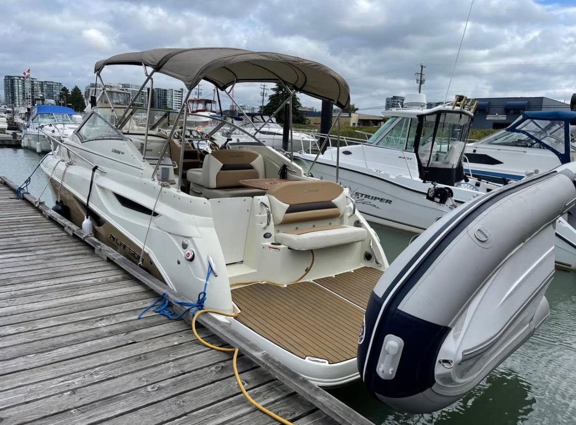 Its well-appointed interior includes a cozy forward seating area that converts to a V-berth and a full beam aft cabin, a fully equipped galley with glass cook top, perfect for weekend getaways.