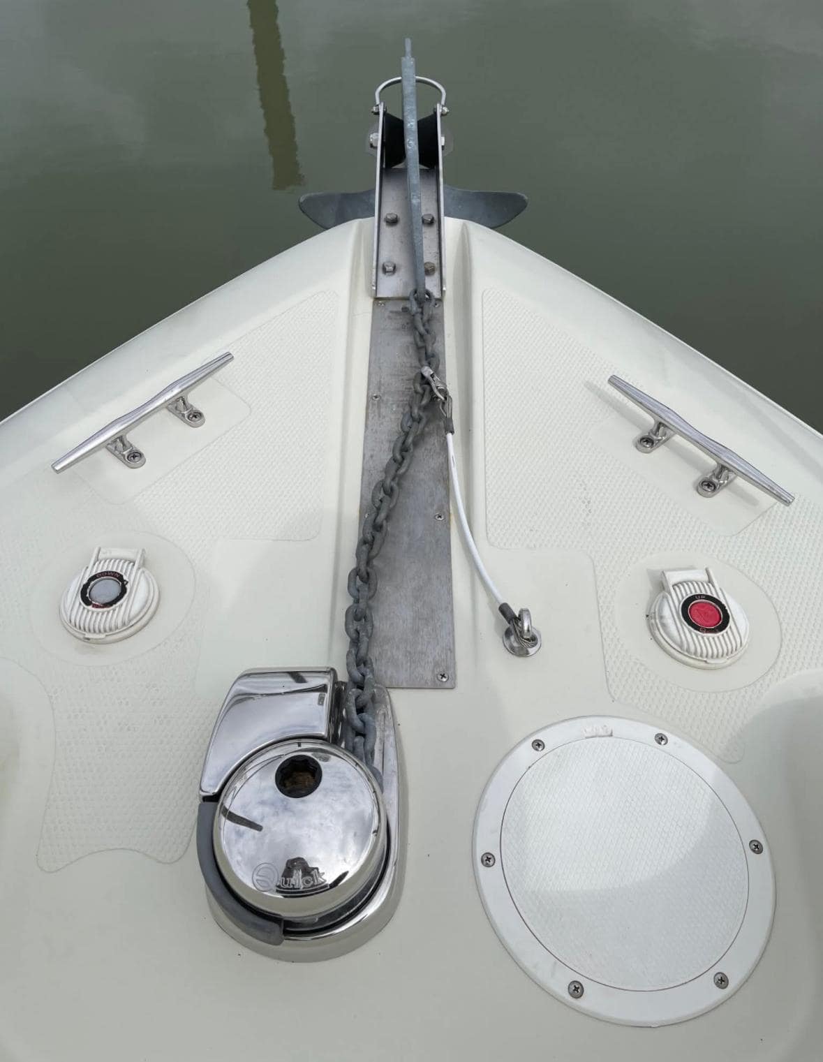 HULL & DECK: Extended & Integrated Swim Platform with Gray Mat, Boarding Ladder SS Telescoping, Welded Rails SS, Welded Bow Rails SS, Welded Foredeck Rails SS, Gunnel Insert SS & Hardware, Ski Tow Hook, Rope Locker Access Bow Pulpit with Roller, Anchor Cleat & Rope, Hull Graphics, Bow Storage Locker, Trim Tabs, Deck Hatch with Screen, Hull Windows, Built-In Integrated Transom Shower