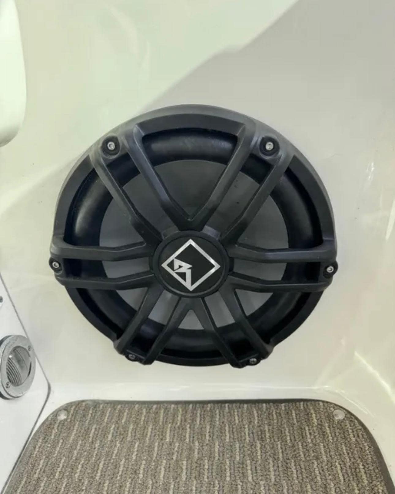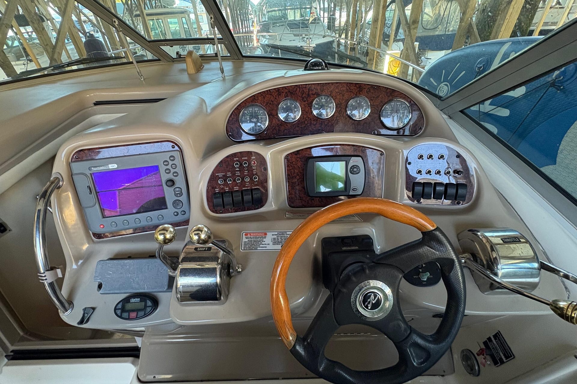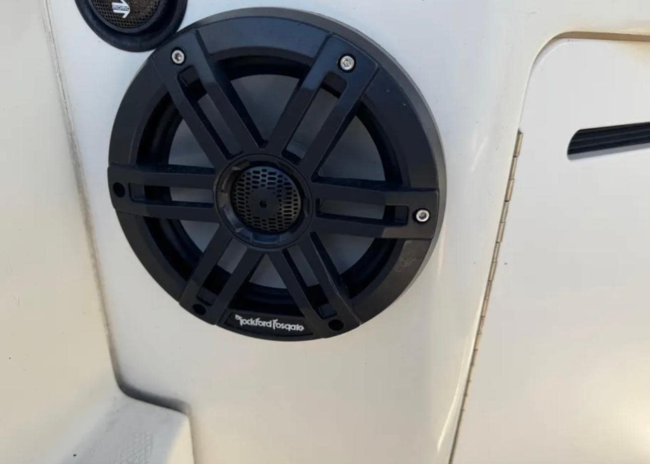 At 14,600 lbs with a 12' beam and 225-gallon fuel capacity, this boat planes easily and offers excellent stability. The helm provides superb visibility, making it ideal for both experienced and first-time boaters.