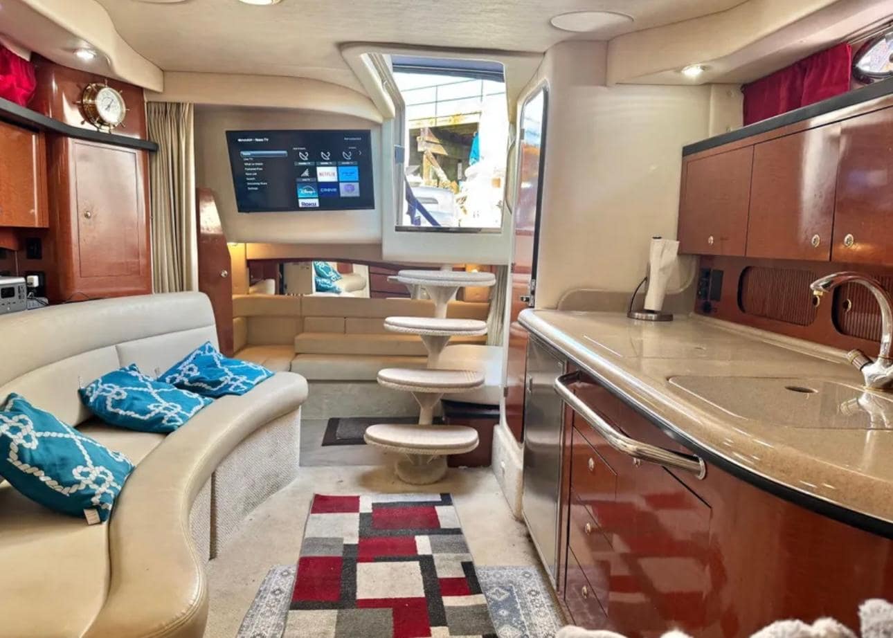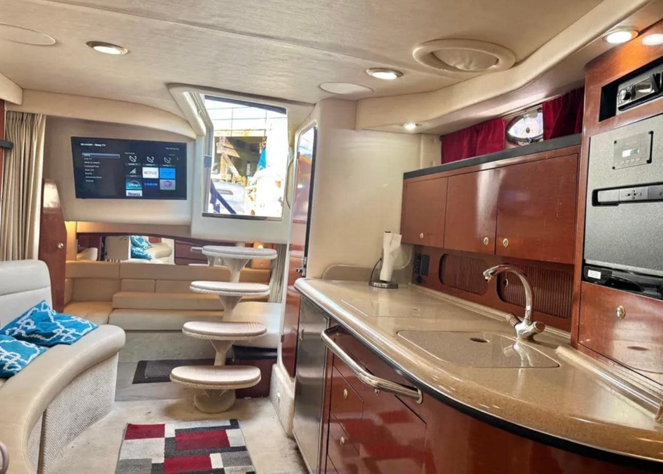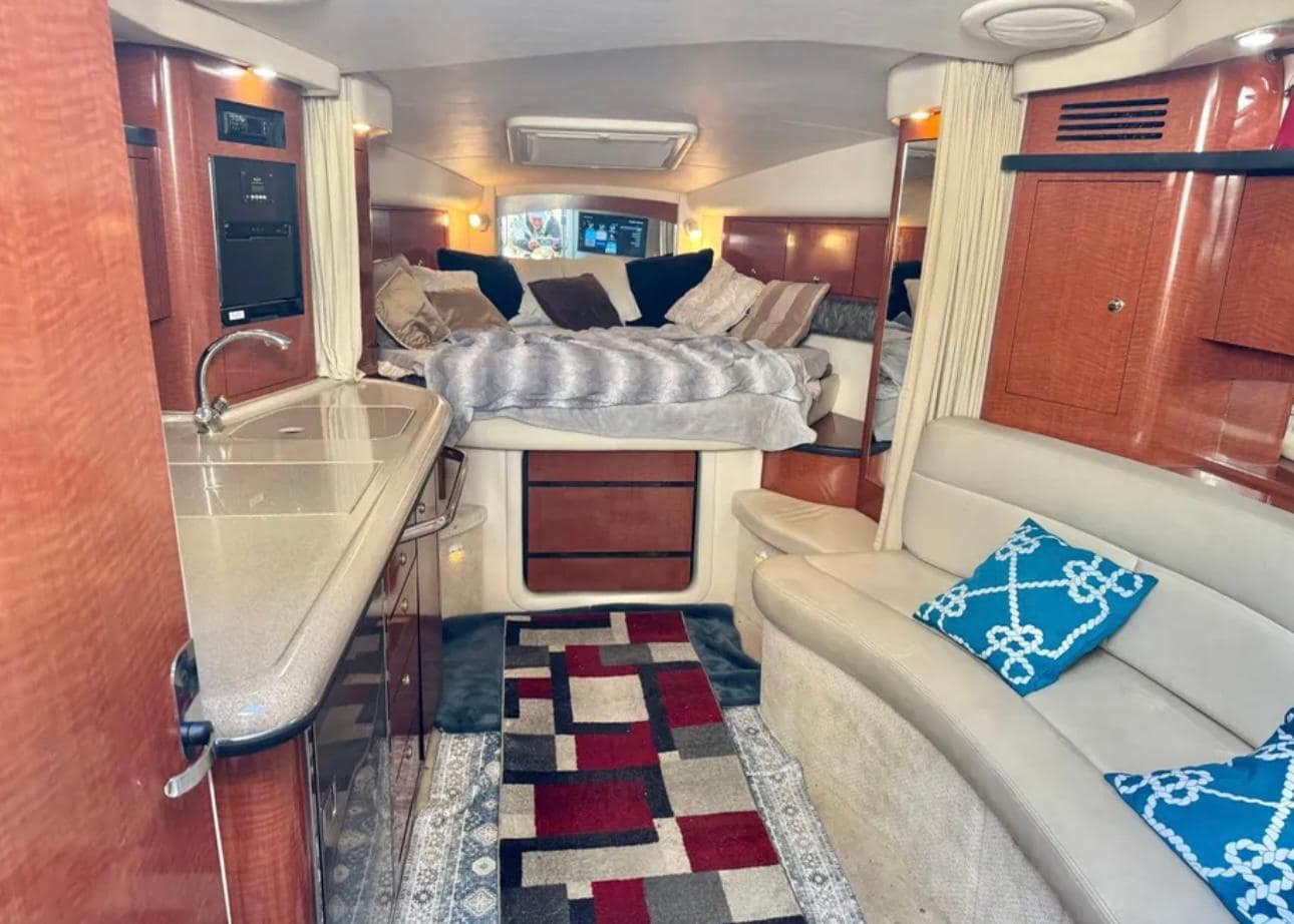 Upgrades like SmartCraft engine management, integrated entertainment systems, and a davit-ready platform enhance usability for both short cruises and extended weekends. Excellent choice for owners seeking an inboard-powered express cruiser with a solid maintenance history and versatile setup.