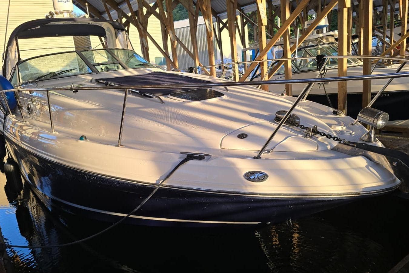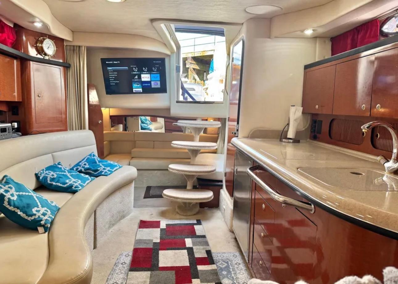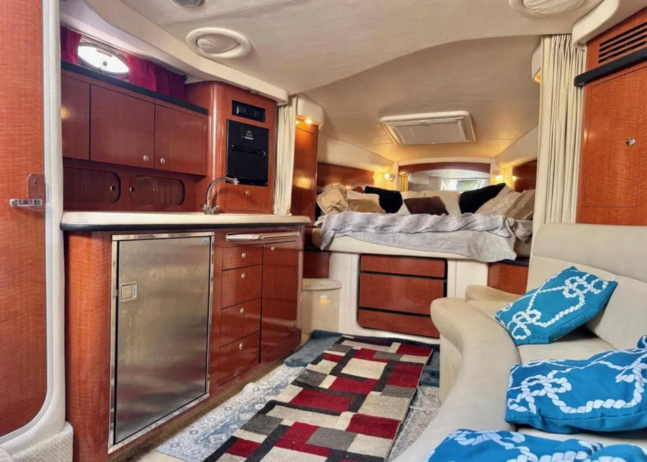 Upgrades like SmartCraft engine management, integrated entertainment systems, and a davit-ready platform enhance usability for both short cruises and extended weekends. Excellent choice for owners seeking an inboard-powered express cruiser with a solid maintenance history and versatile setup.