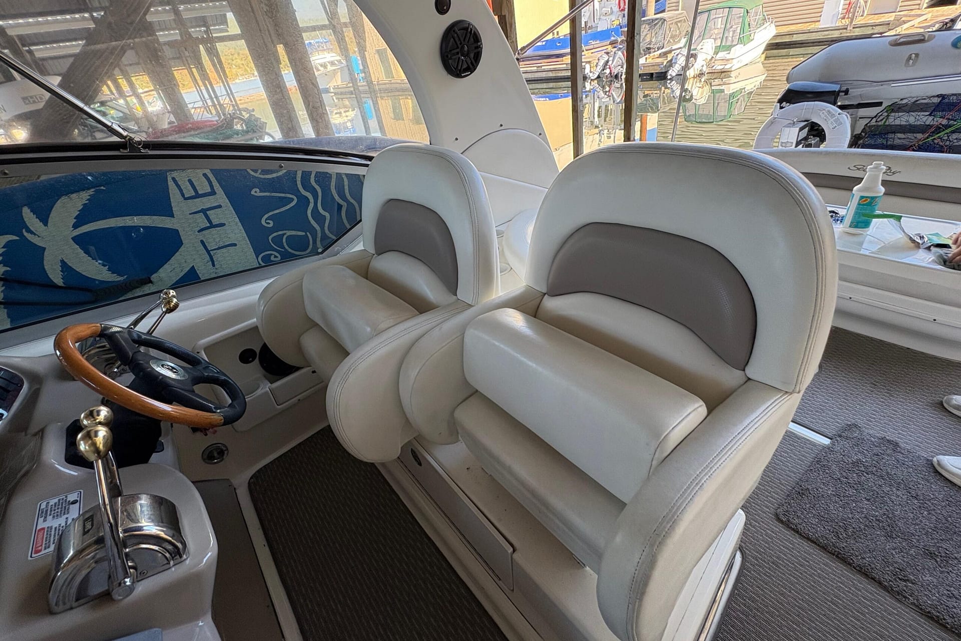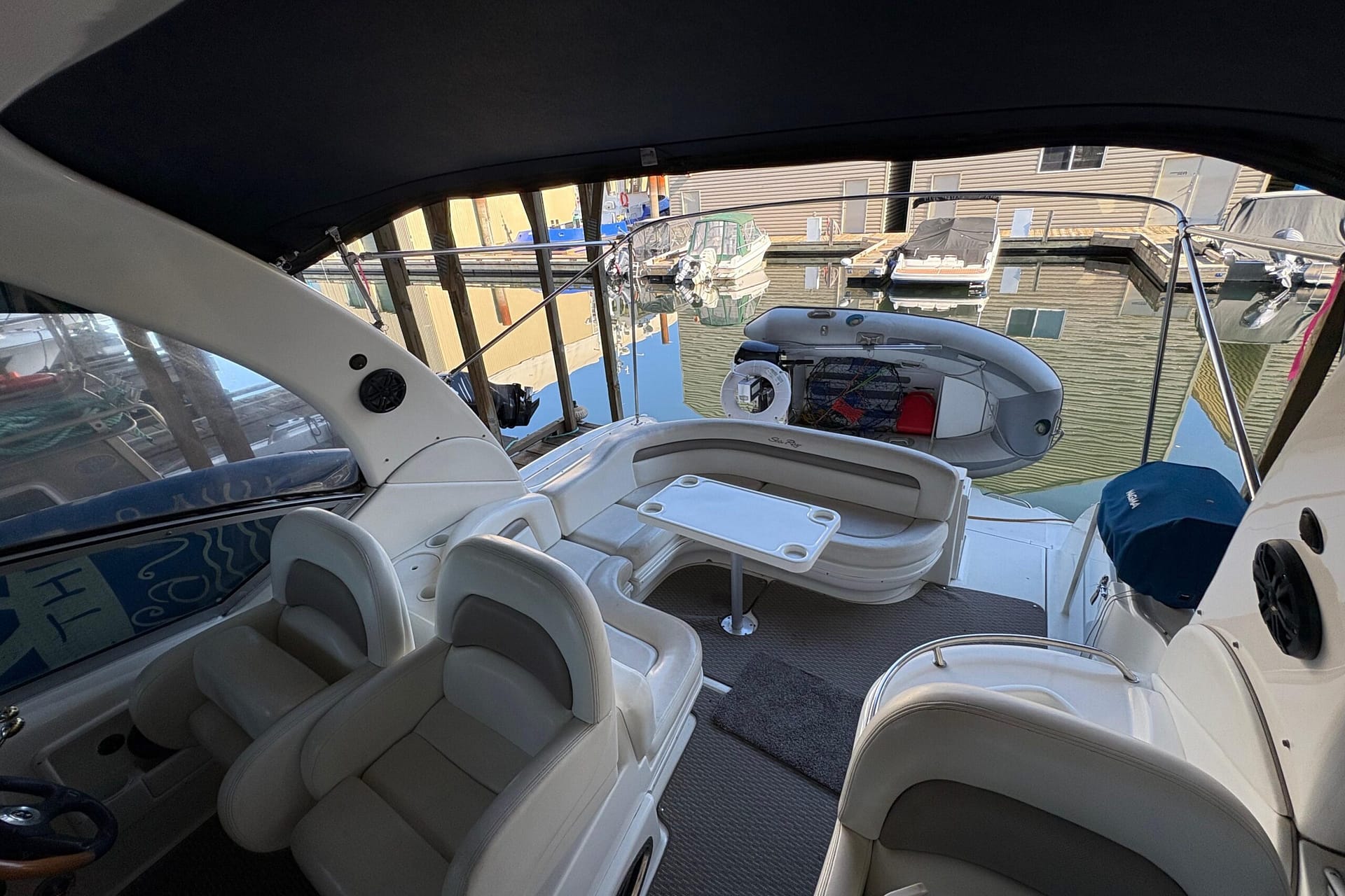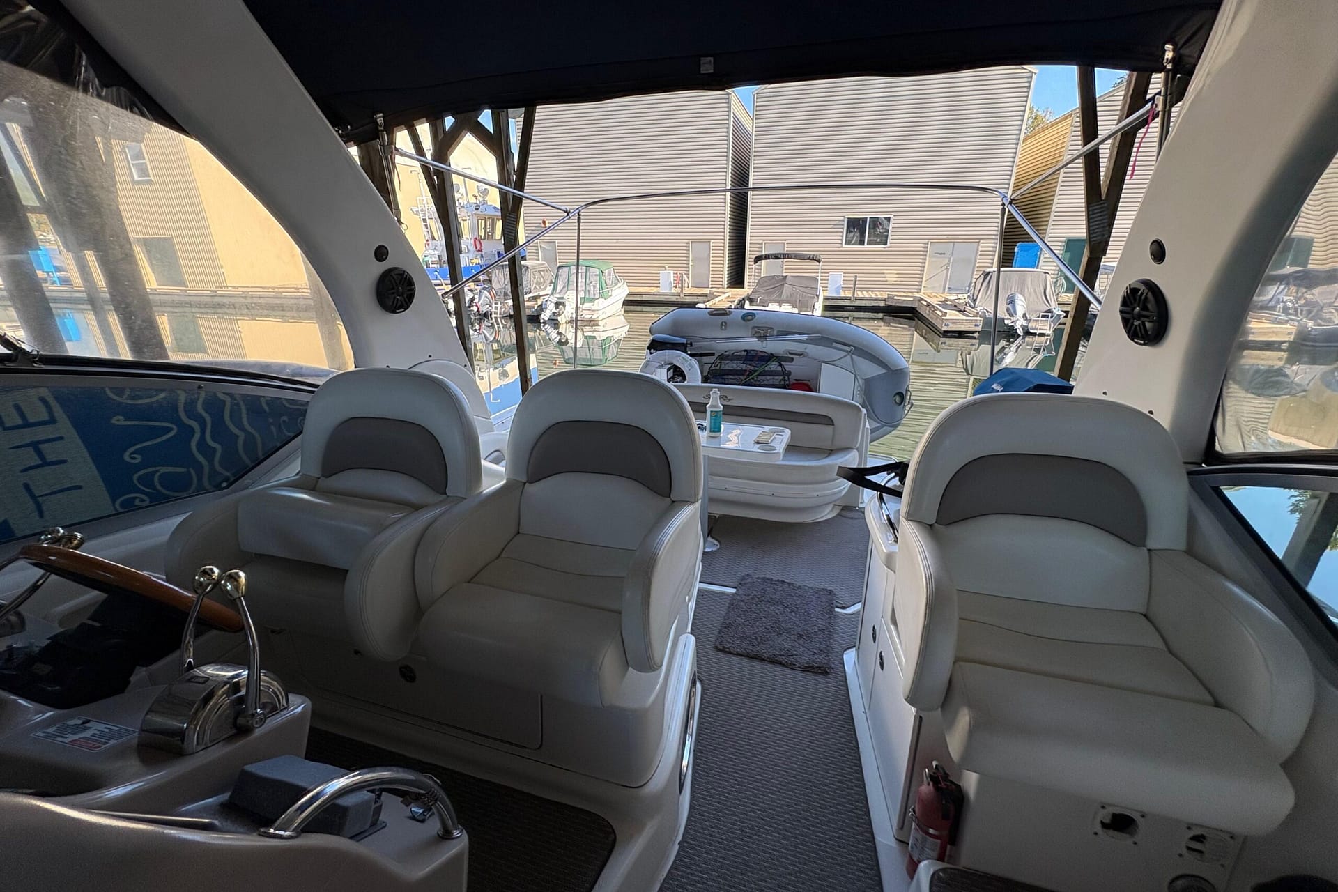 Spacious cockpit with wrap-around guest seating