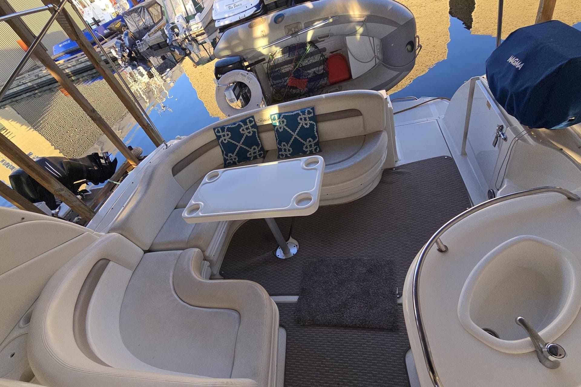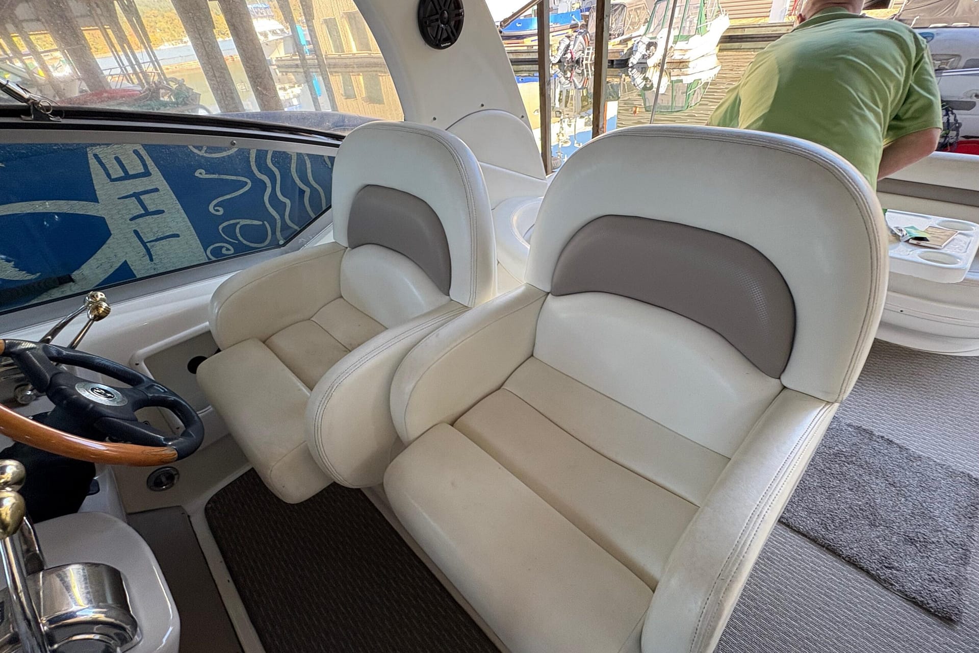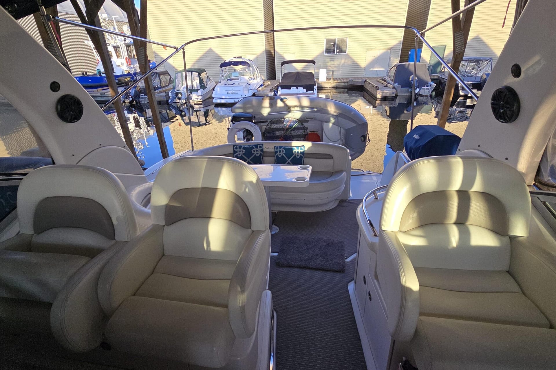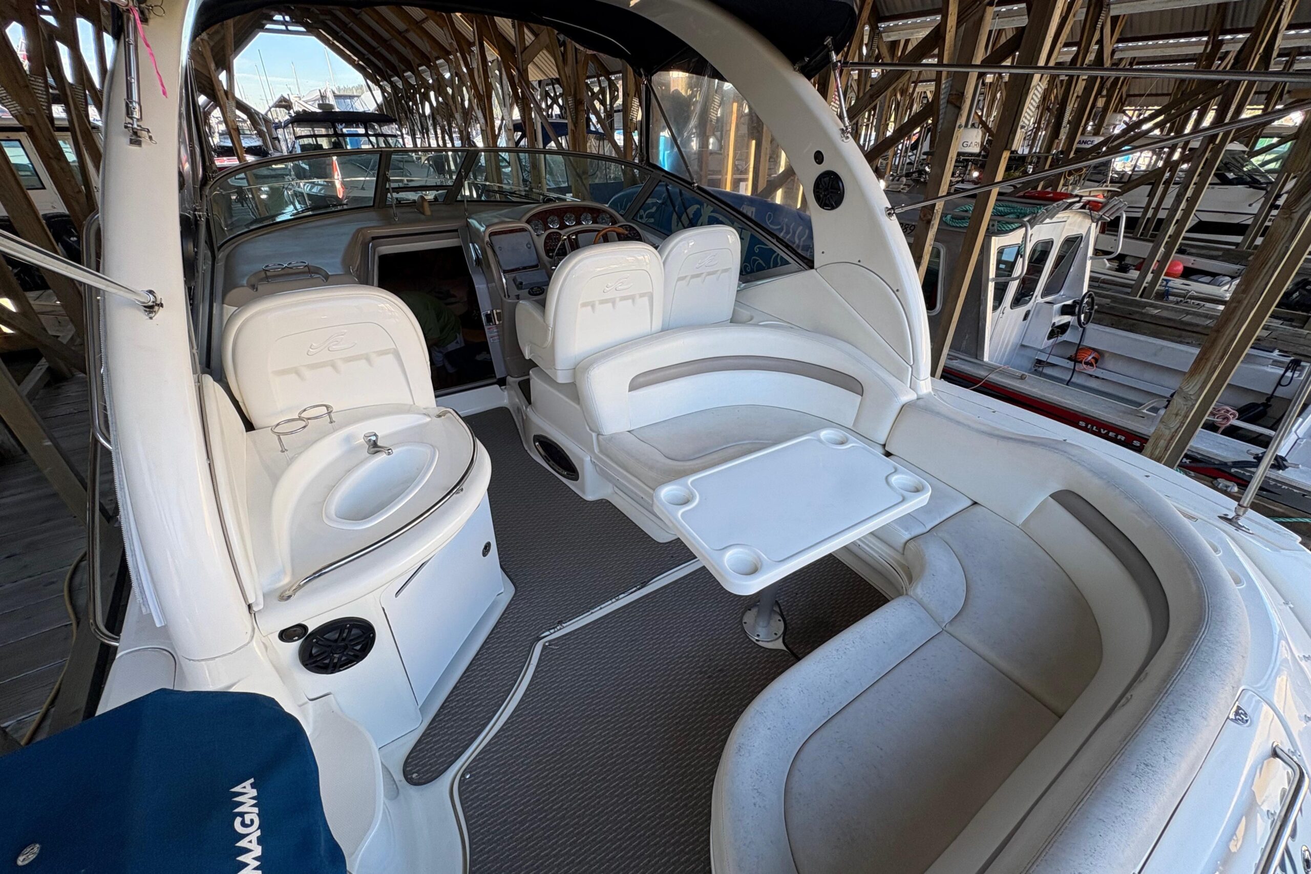 Spacious cockpit with wrap-around guest seating