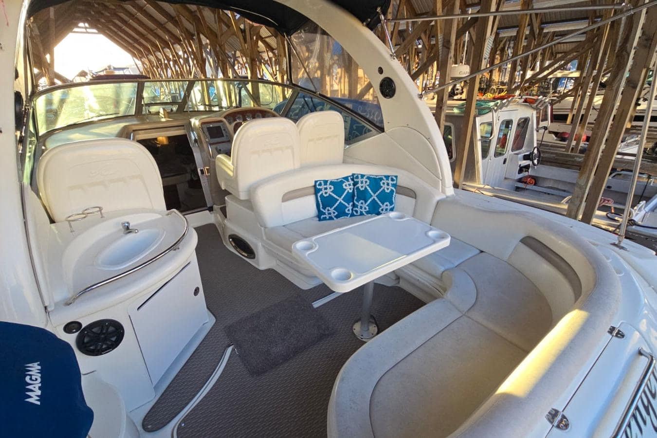 The 2004 Sea Ray 340 Sundancer remains one of the most popular sport cruisers ever built. Powered by twin MerCruiser 8.1L engines (375hp each, 935 hours)Coupled with V-drives, it delivers strong performance and reliable handling. Professionally serviced with over $20,000 in recent dealer maintenance, including:
