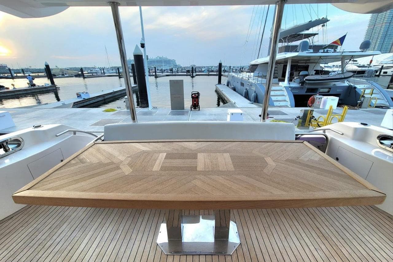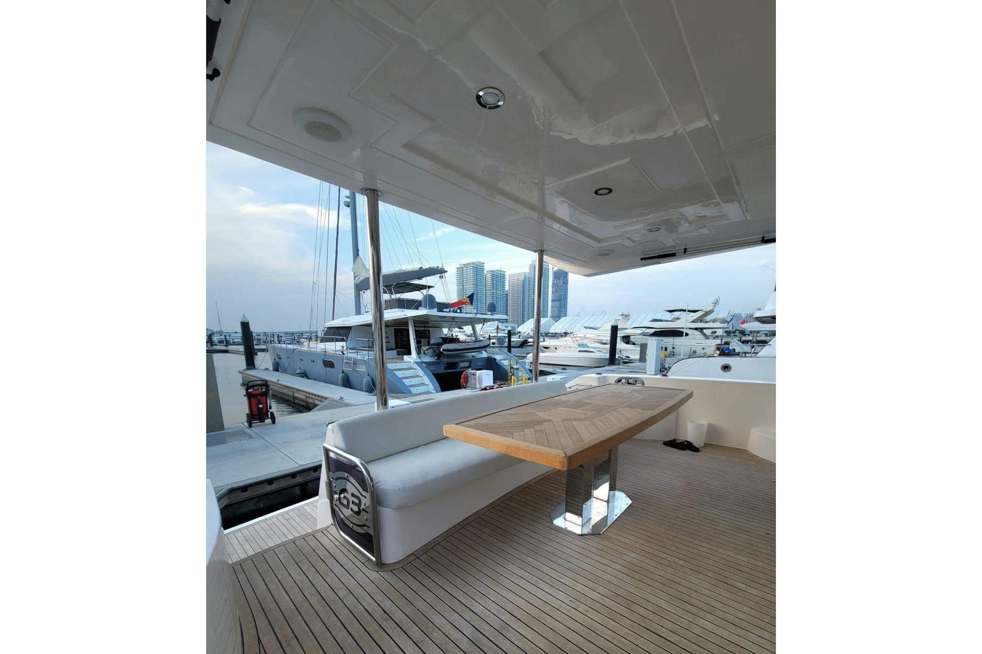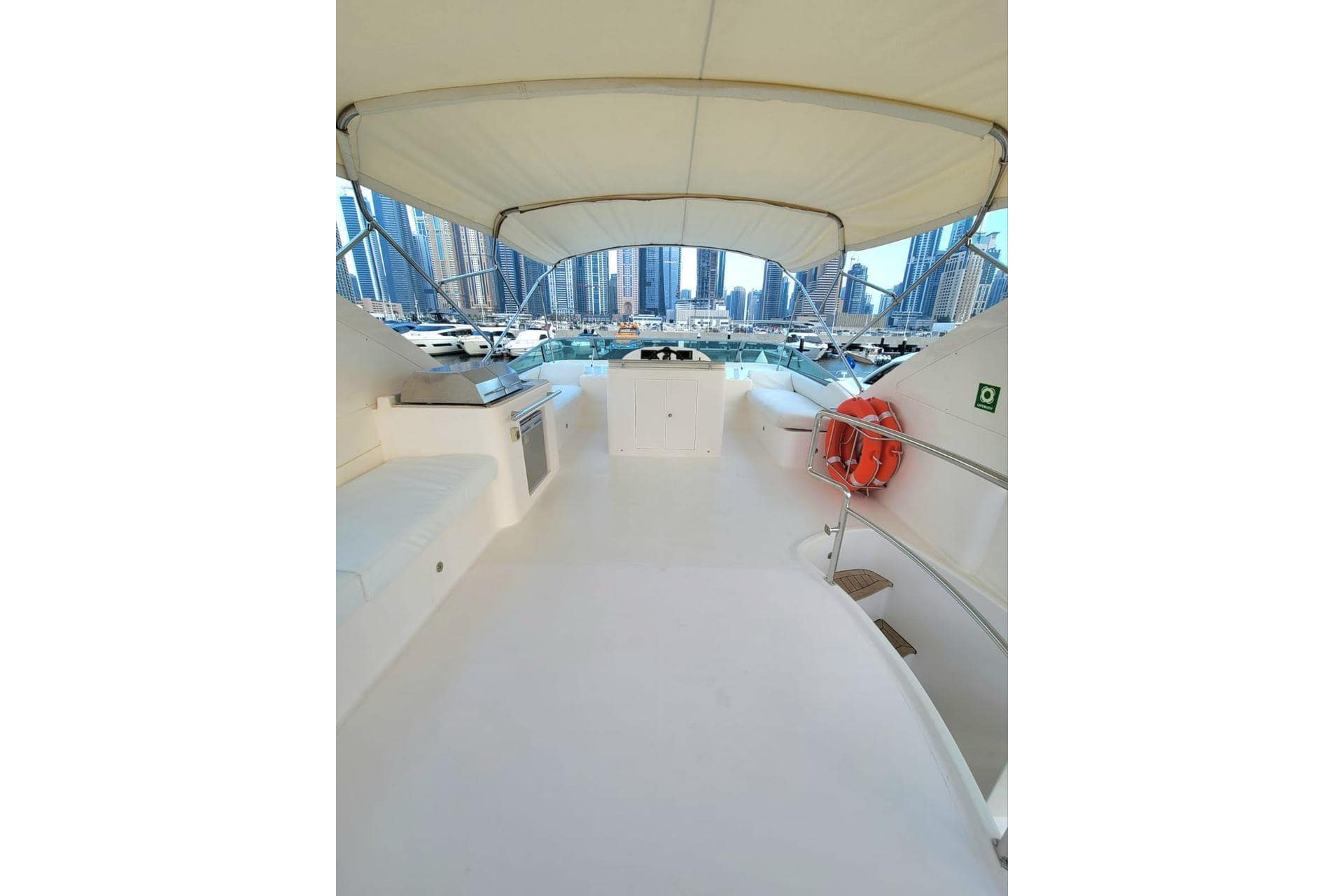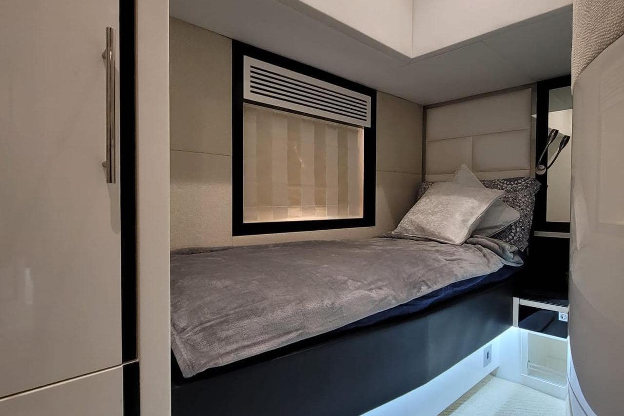 Step inside to discover a sophisticated and thoughtfully laid-out interior. Natural light fills the spacious salon and dining area, while premium finishes and modern appointments reflect Gulf Craft’s commitment to quality. Below deck, the yacht typically offers 4 well-appointed cabins accommodating family and guests comfortably, along with dedicated crew quarters aft.
