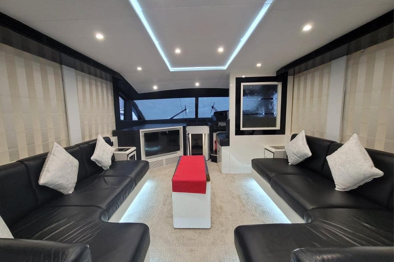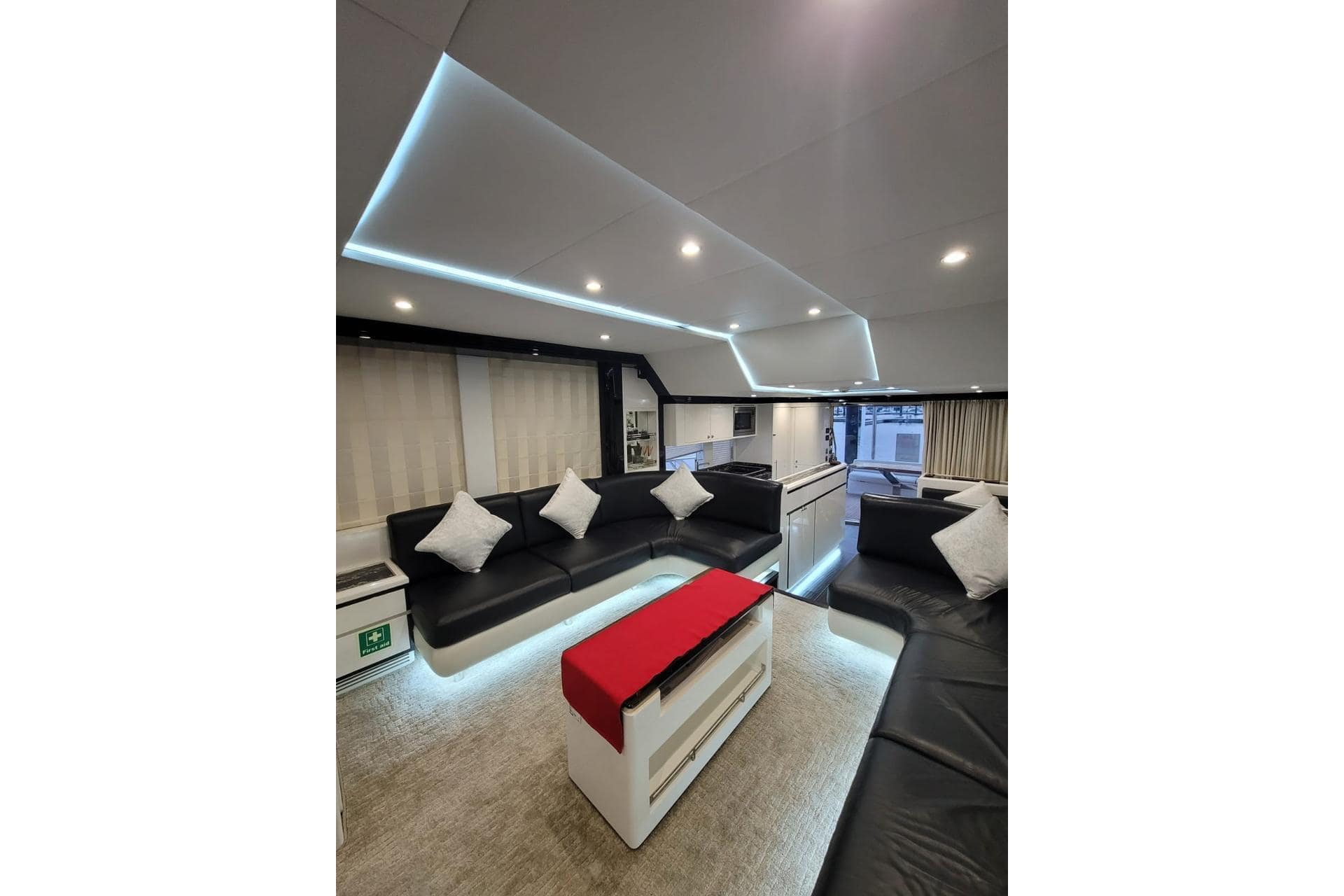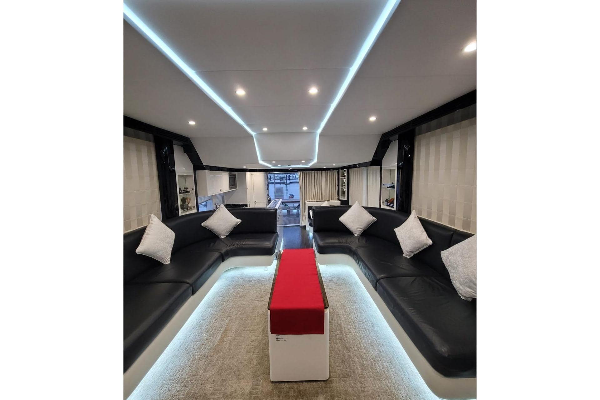 Large Main Salon: Light-filled interior with panoramic views, premium upholstery, and adaptable seating.
