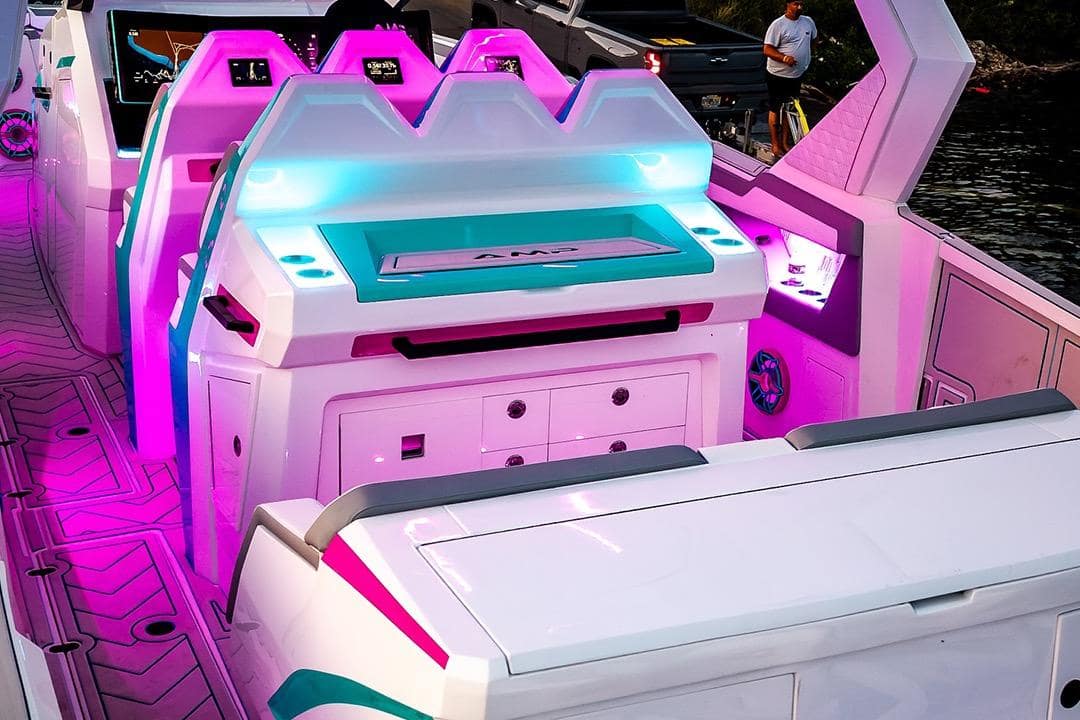Built by AMP Marine (American Marine Performance), this 43' is engineered for versatility, offering the perfect balance between high-speed excitement, durability, and Luxury on the water. The AMP 433 has become a standout choice for those seeking a boat that can handle both thrilling adventures and relaxing cruises, all while maintaining a modern & sophisticated edge.