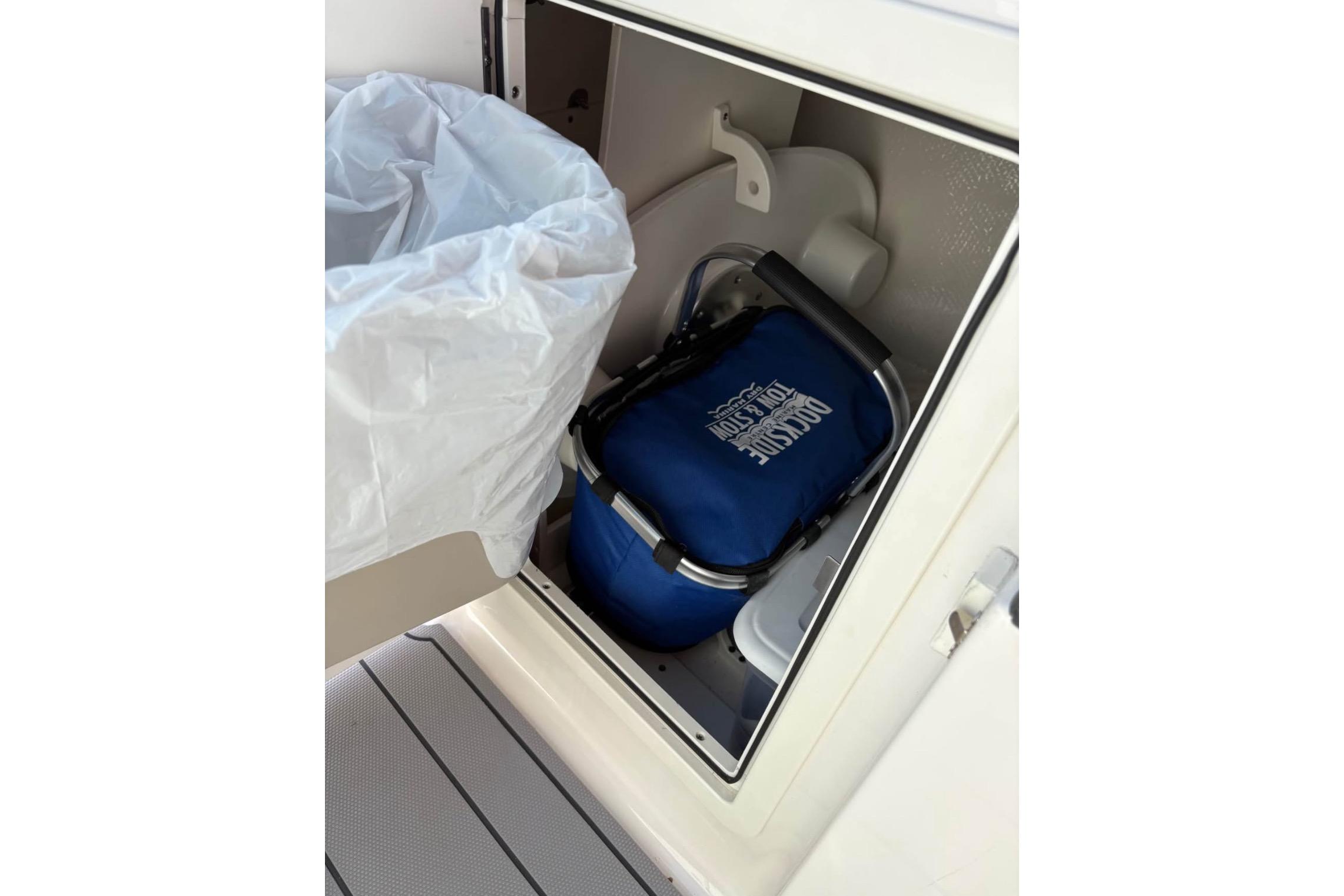 - Storage in Floor with Large Hinged Fiberglass Hatch and Rubber Mat