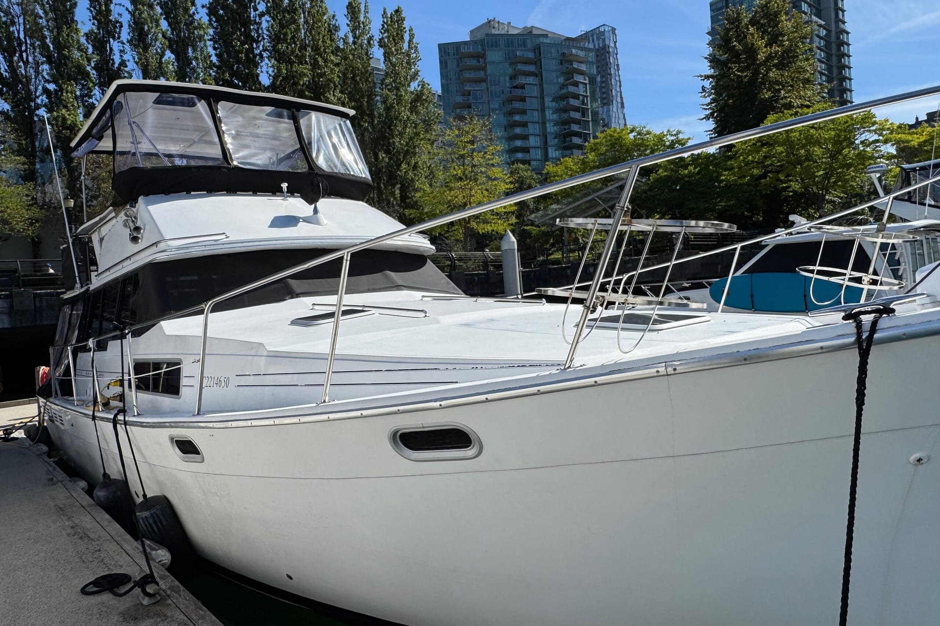 Ideal for the yachtsman seeking a well-appointed and popular diesel cruising yacht at a reasonable price, the 3888 Motor Yacht (known as the 3780 M/Y from 1983 to 1989) boasts a long list of impressive improvements. These include new Sunbrella canvas with a custom bridge enclosure, a custom bridge hardtop, and all-new vinyl in the bridge and salon. This yacht can be your waterfront floating condo at a fraction of the price of similar real estate.