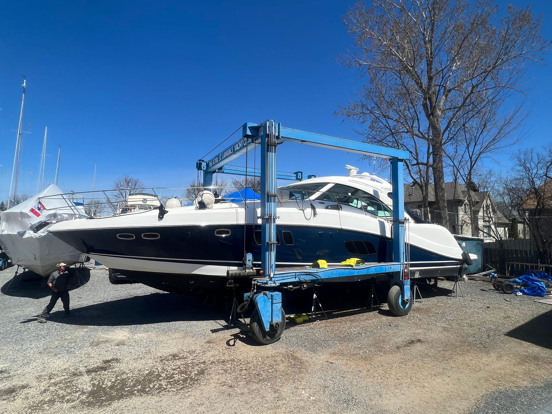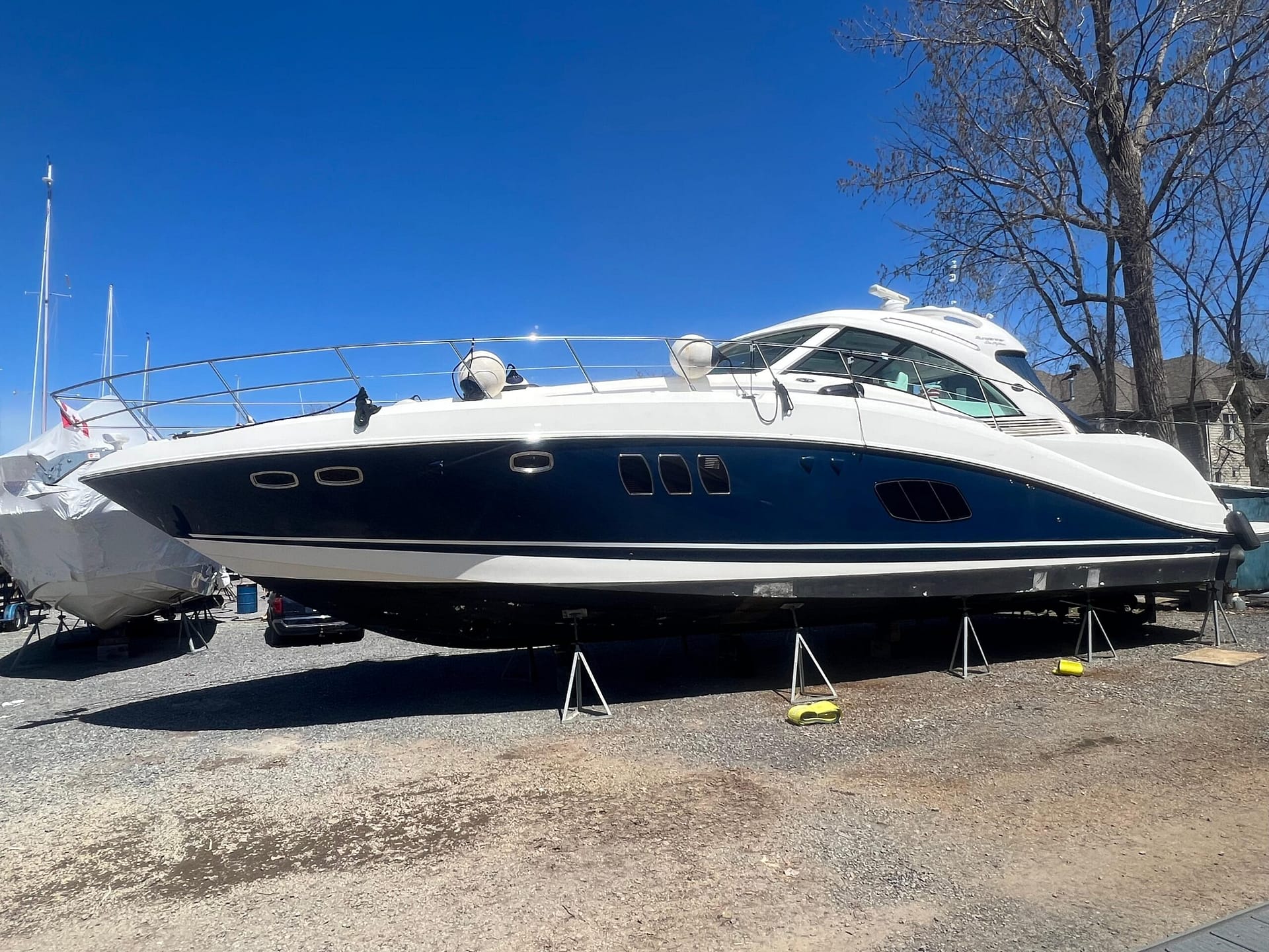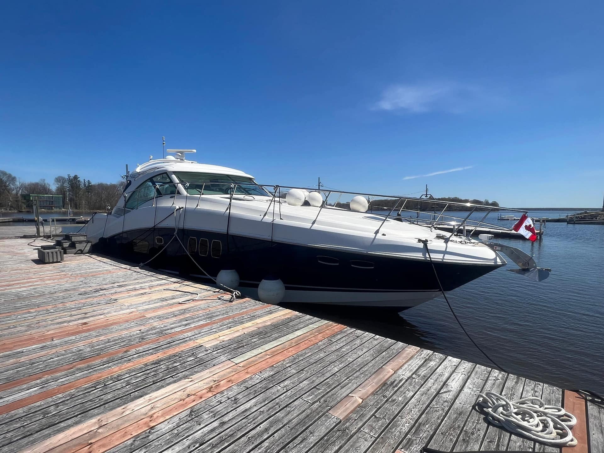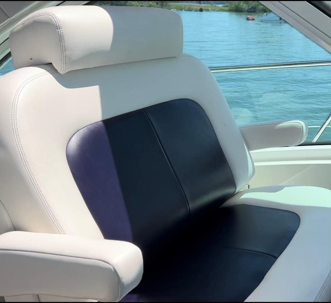 ‘Sand Say Ocean’ Is a single owner, freshwater only, highly equipped luxury yacht. She sports low hours. A navy blue hull, and all the features required for live aboard status.