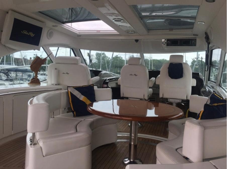 Sea Rays “out-of-this-world” 580 Sundancer is an amazing yacht. The wow features are endless, beginning with an upper-deck sunroom with two retractable sun roofs, teak flooring and a 360-degree panoramic view. The yachts features an elegant salon with state-of-the-art entertainment center, two luxurious staterooms and a wealth of gracious amenities throughout.