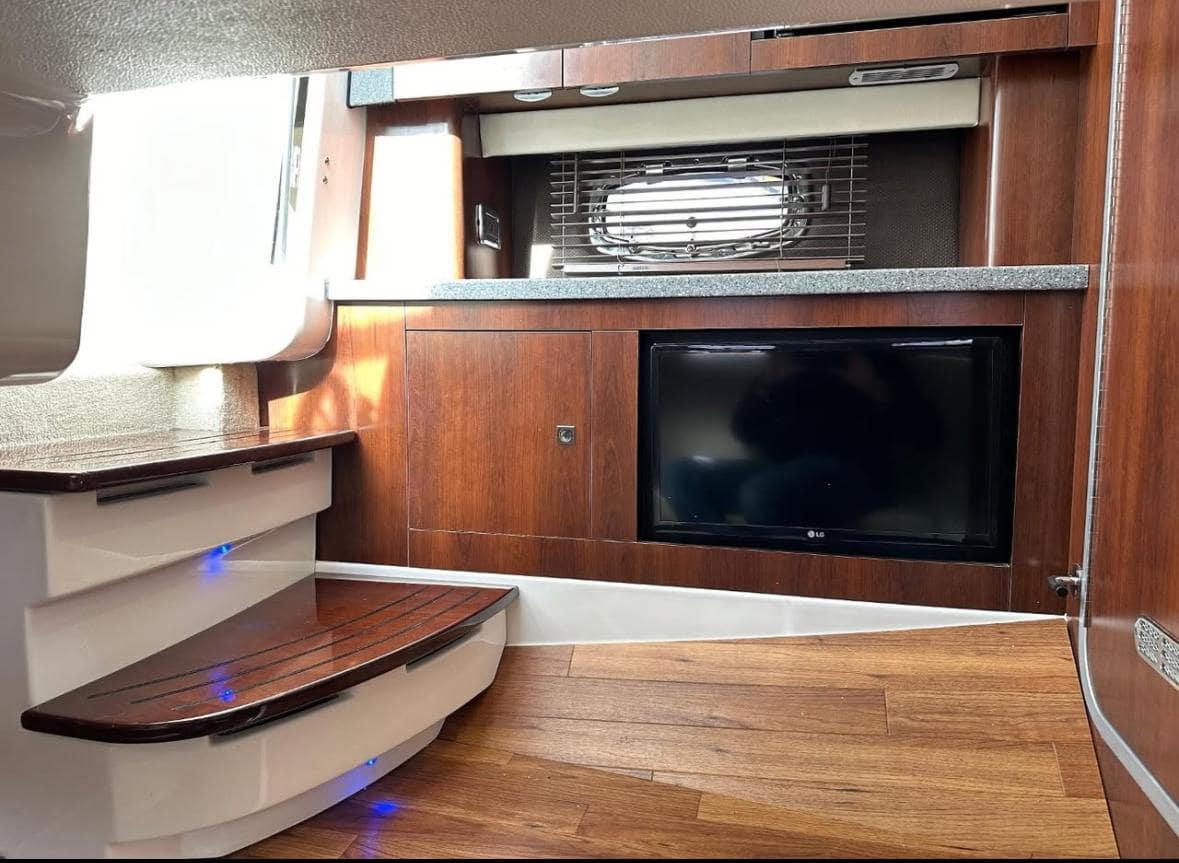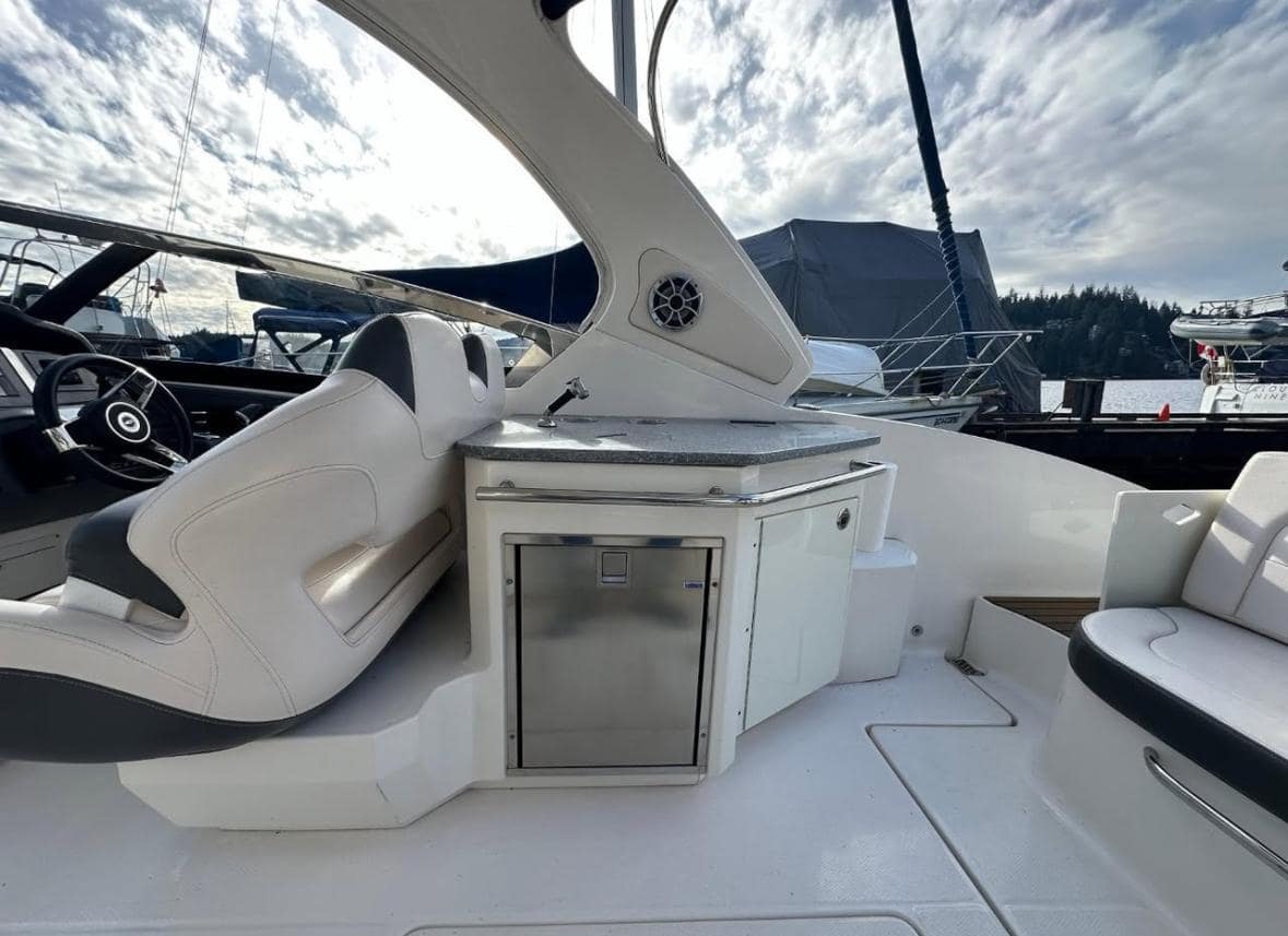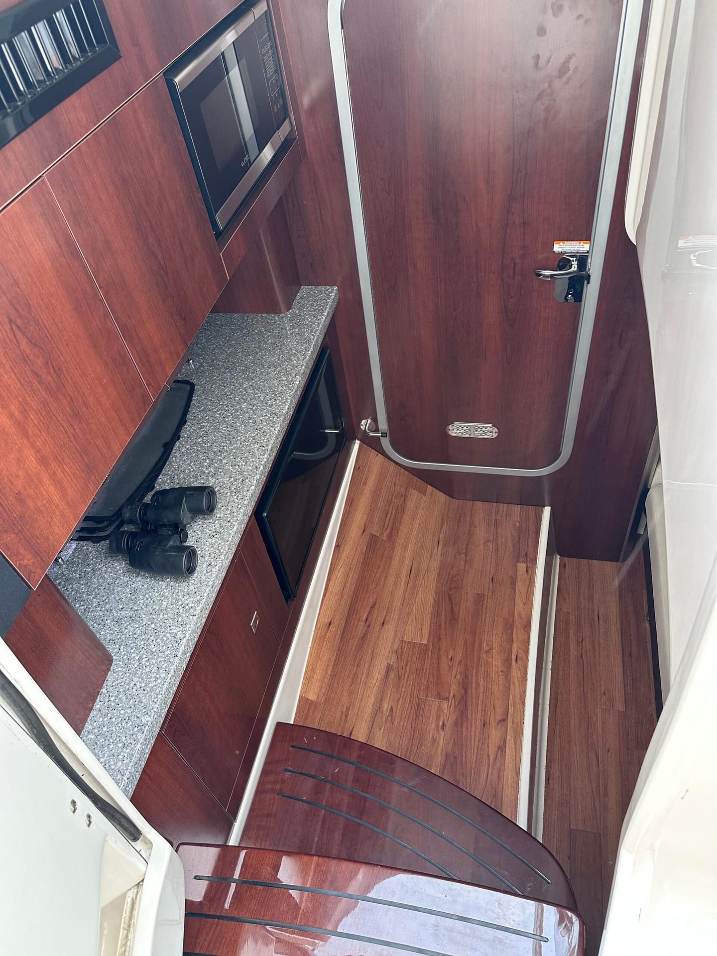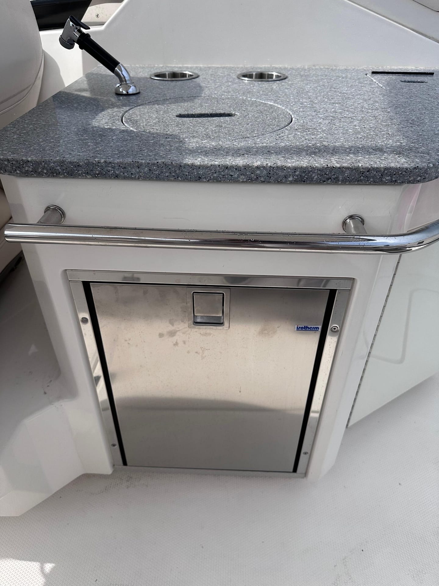 - **Wet Bar, Head, and Berth**: Equipped for comfort and convenience, on her port side behind the helm this yacht features a wet bar (optional) for refreshments, a head for convenience and comfort, and a cozy berth with heat/AC for resting after a day of fun on the water.