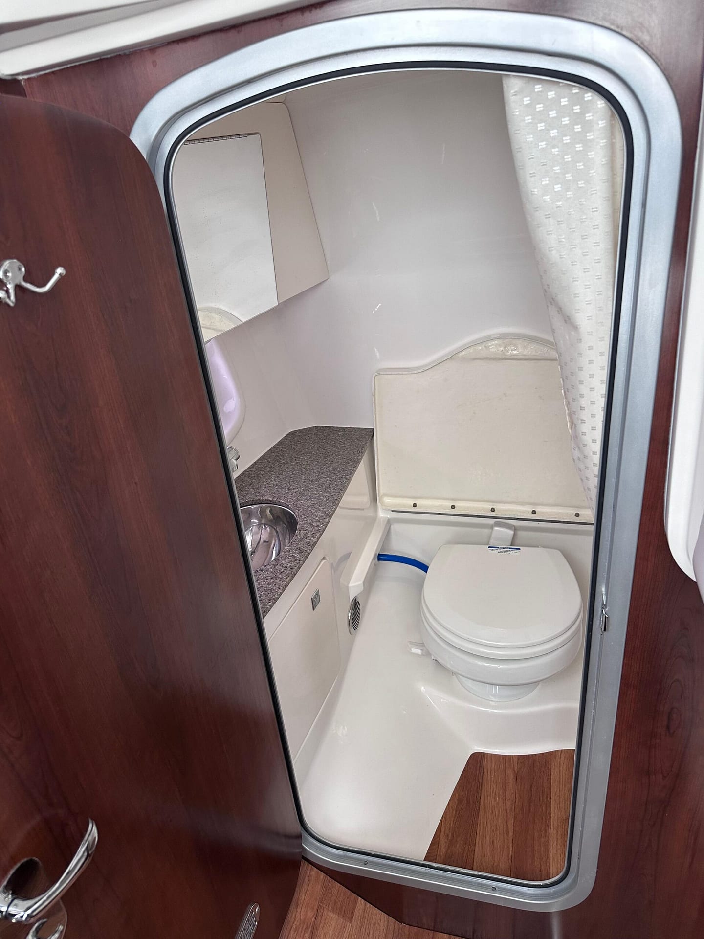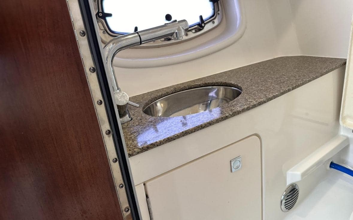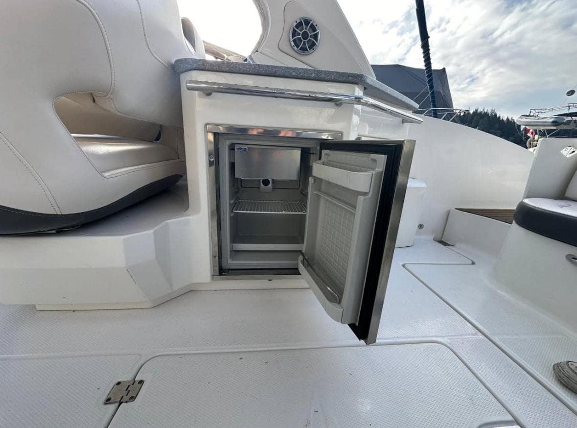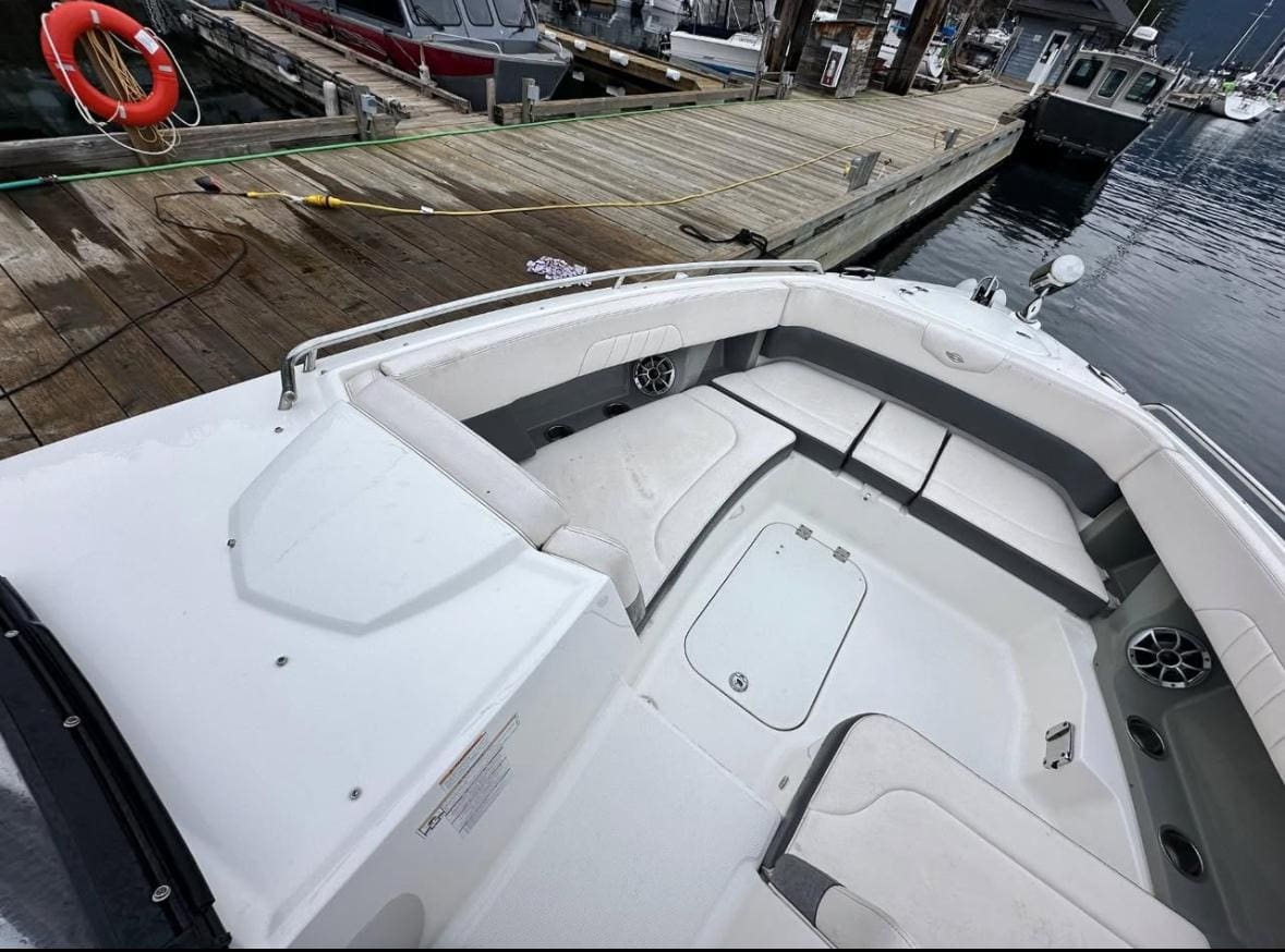 - **Wet Bar, Head, and Berth**: Equipped for comfort and convenience, on her port side behind the helm this yacht features a wet bar (optional) for refreshments, a head for convenience and comfort, and a cozy berth with heat/AC for resting after a day of fun on the water.