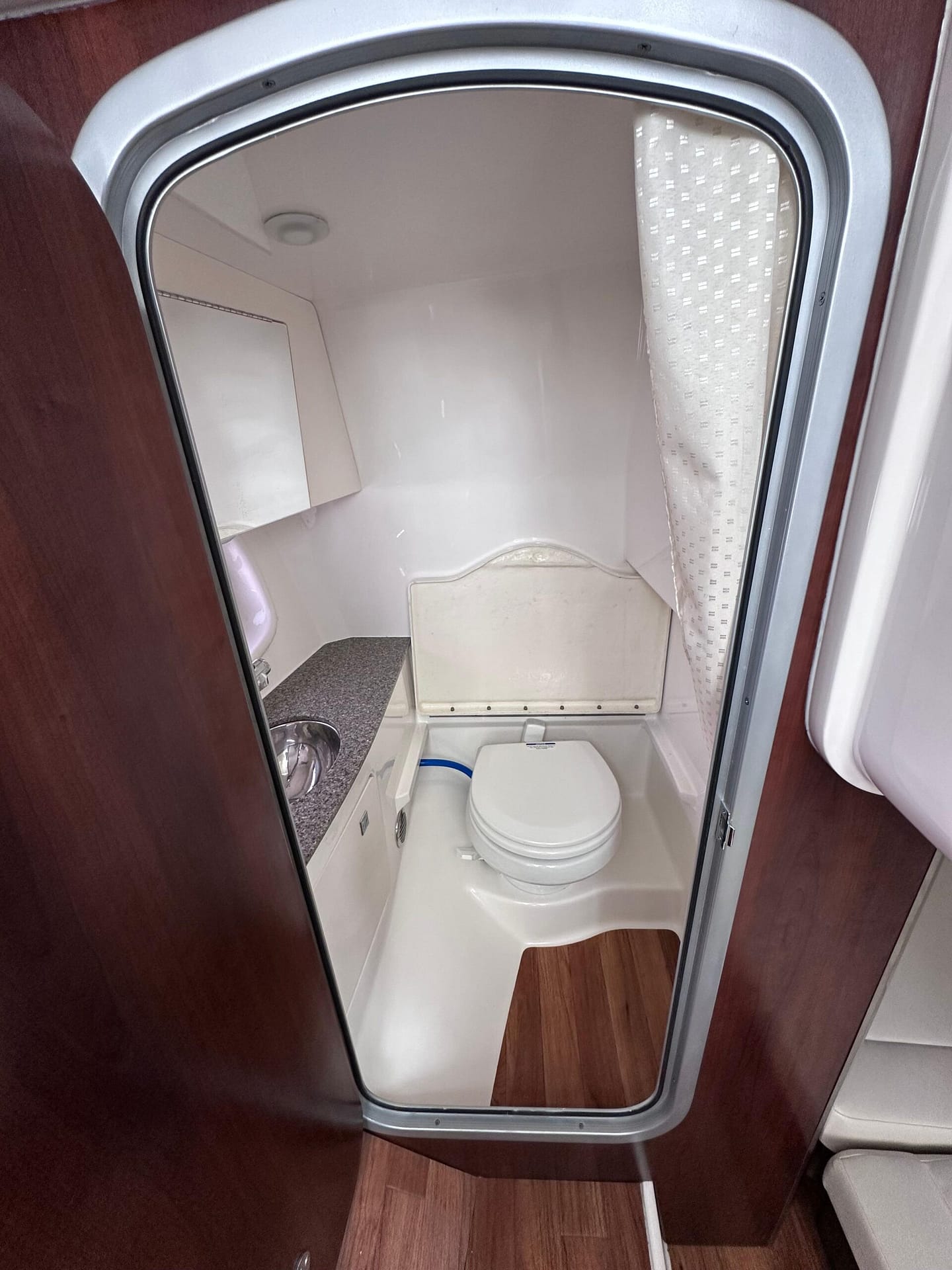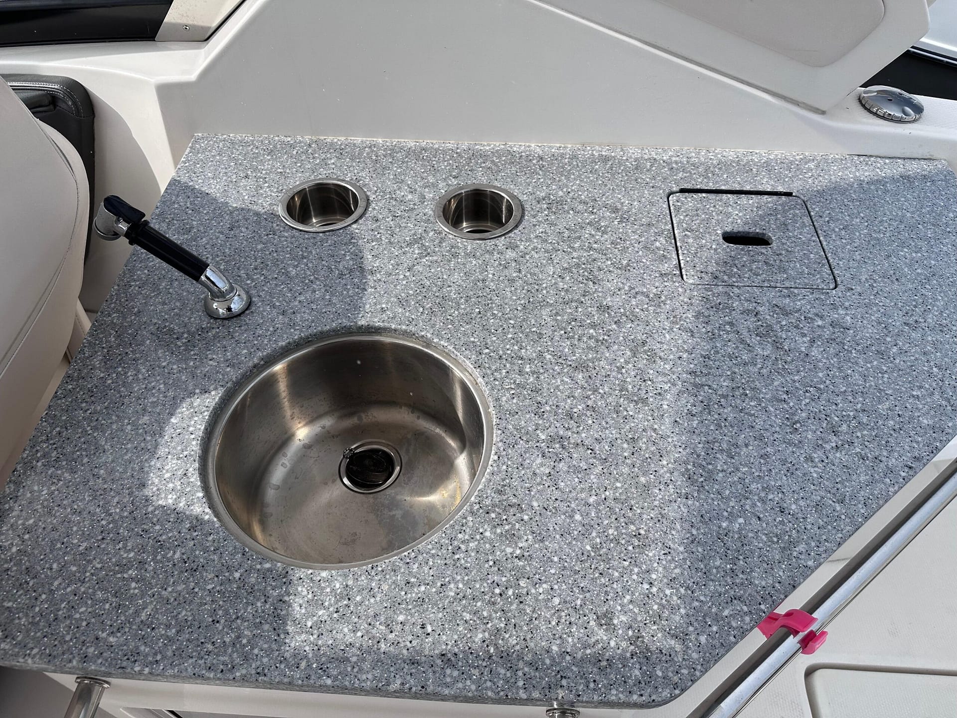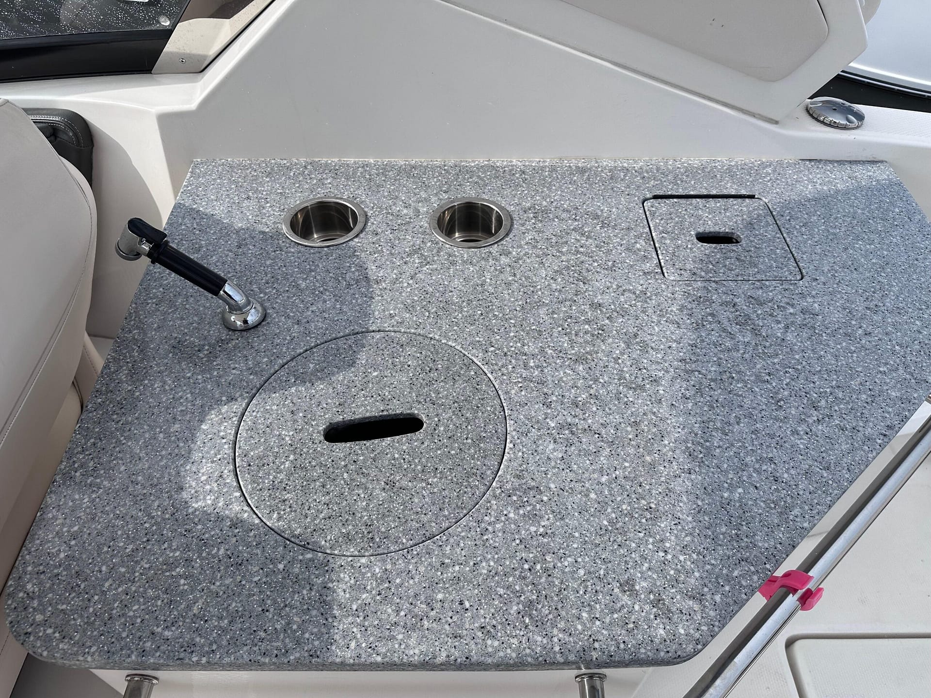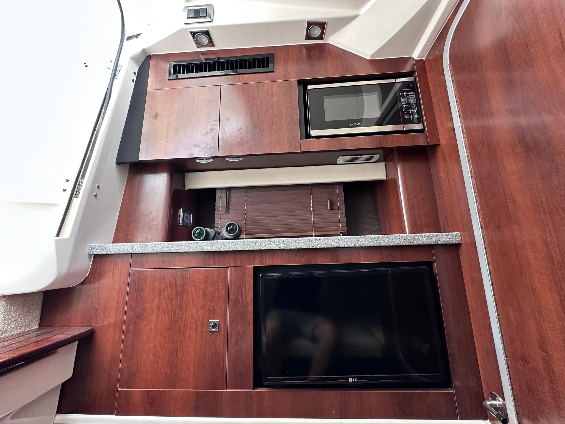 - **Wet Bar, Head, and Berth**: Equipped for comfort and convenience, on her port side behind the helm this yacht features a wet bar (optional) for refreshments, a head for convenience and comfort, and a cozy berth with heat/AC for resting after a day of fun on the water.