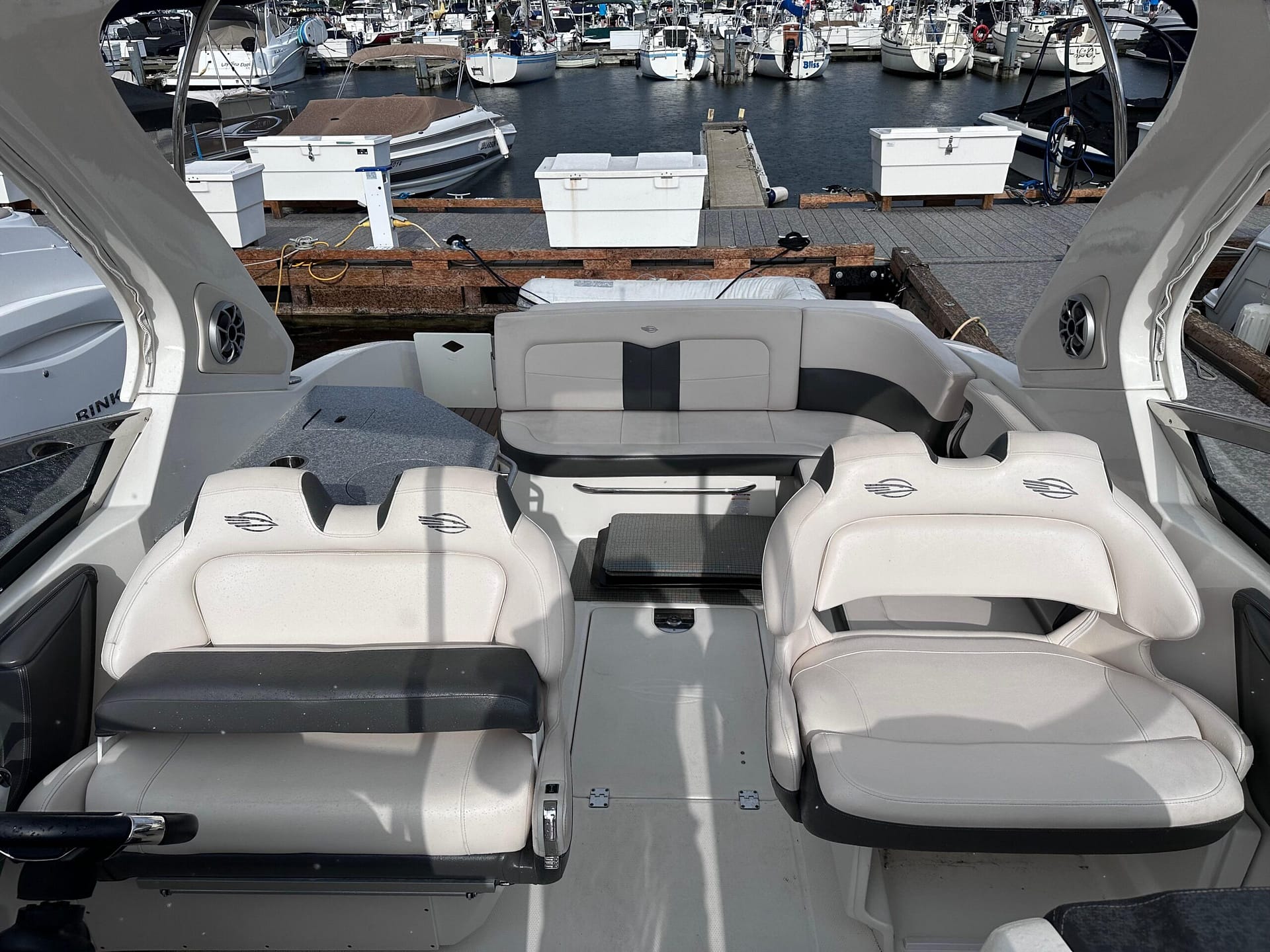 At the heart of this Chaparral is the powerful MerCruiser SeaCore 8.2L Mag. V8 big block engine. With an impressive output of up to 380 horsepower, it offers exhilarating performance, allowing you to reach a top speed of approximately 50 mph. With thrilling acceleration and responsive handling, this yacht is perfect for water sports, day cruising, and entertaining small crowds.
